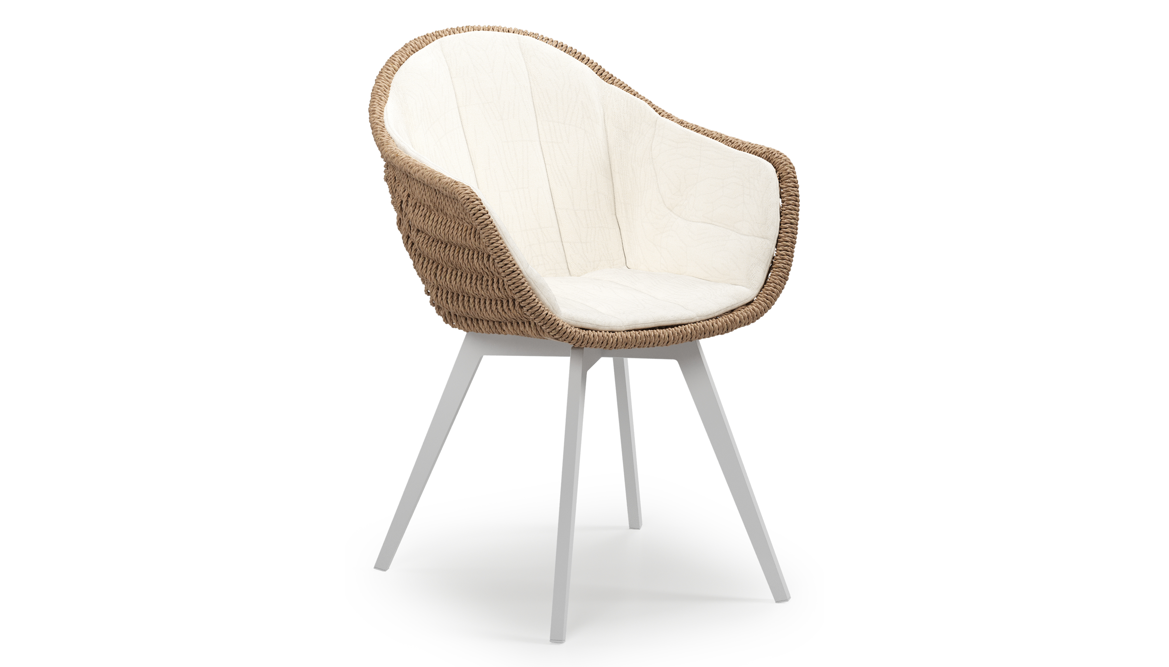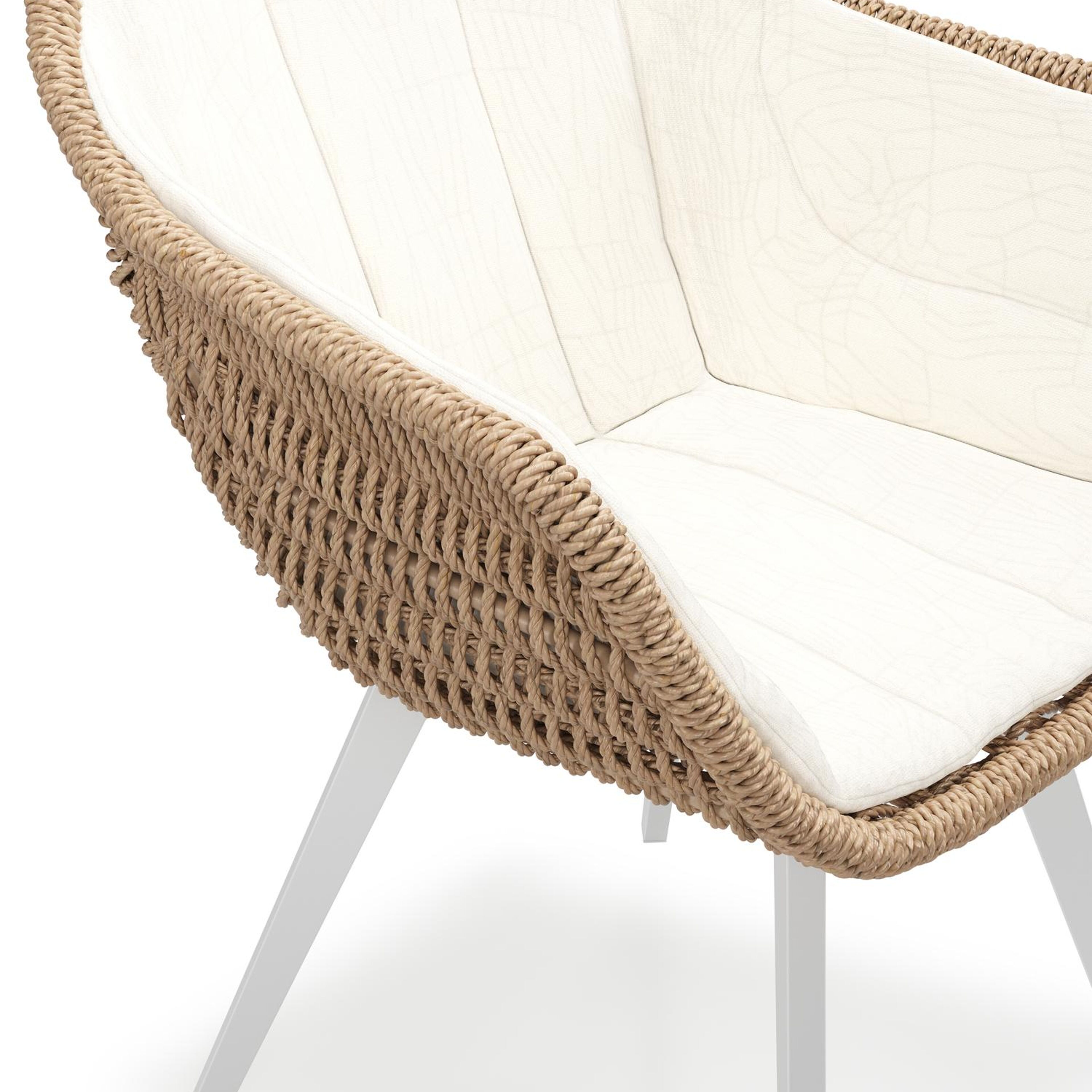 Pagino tuinstoel in wit aluminium en naturel ronde wicker met zitkussen in All Weather Sunbrella® Luxe Natte White | Exterioo tuinmeubelen