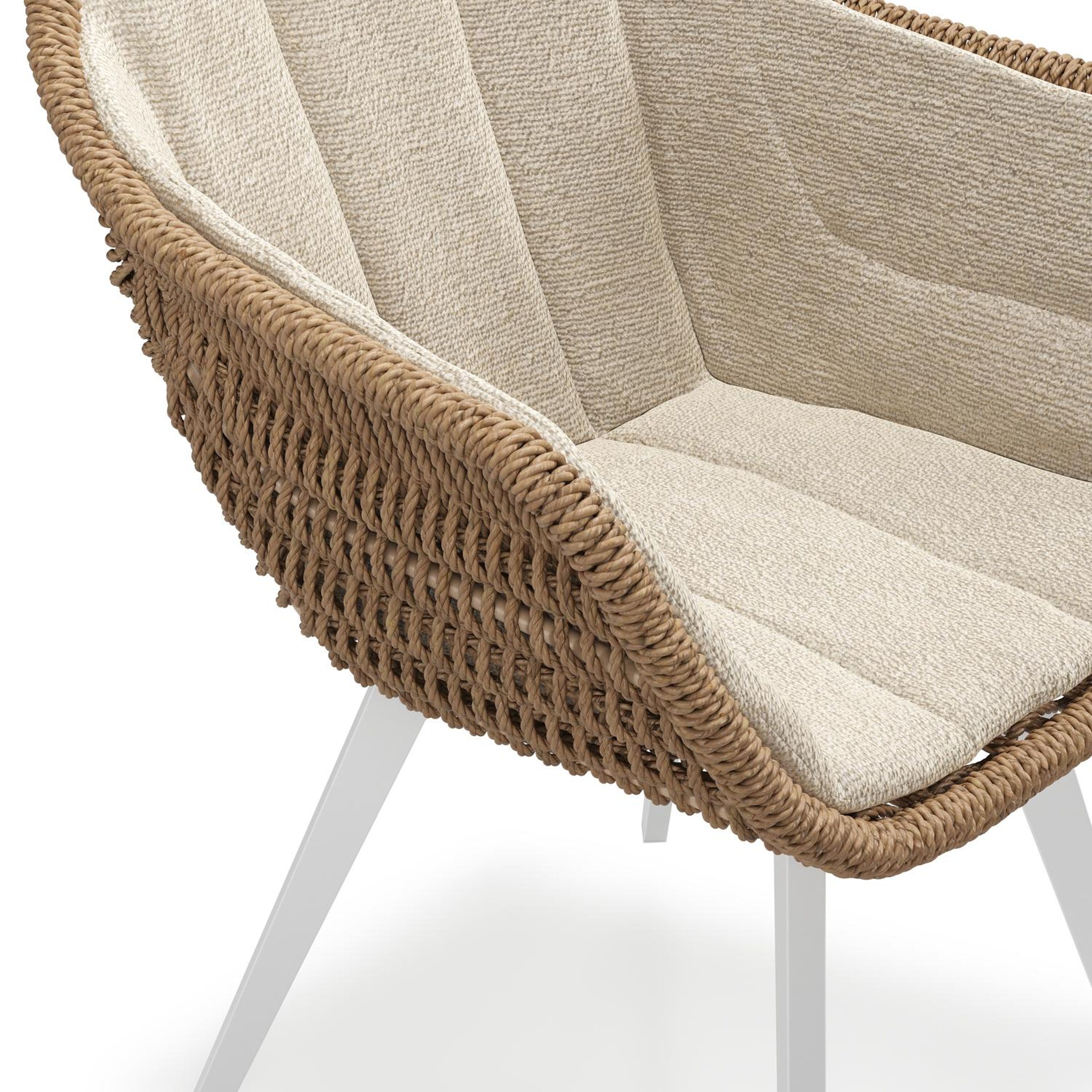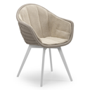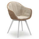 Pagino tuinstoel in wit aluminium en bruin ronde wicker met zitkussen in All Weather Cosytica Marbella Sand | Exterioo tuinmeubelen