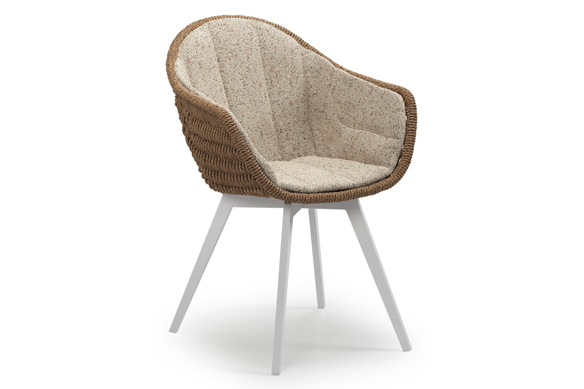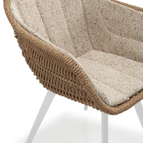 Pagino tuinstoel in wit aluminium en bruin ronde wicker met zitkussen in All Weather Cosytica Bora Jungle | Exterioo