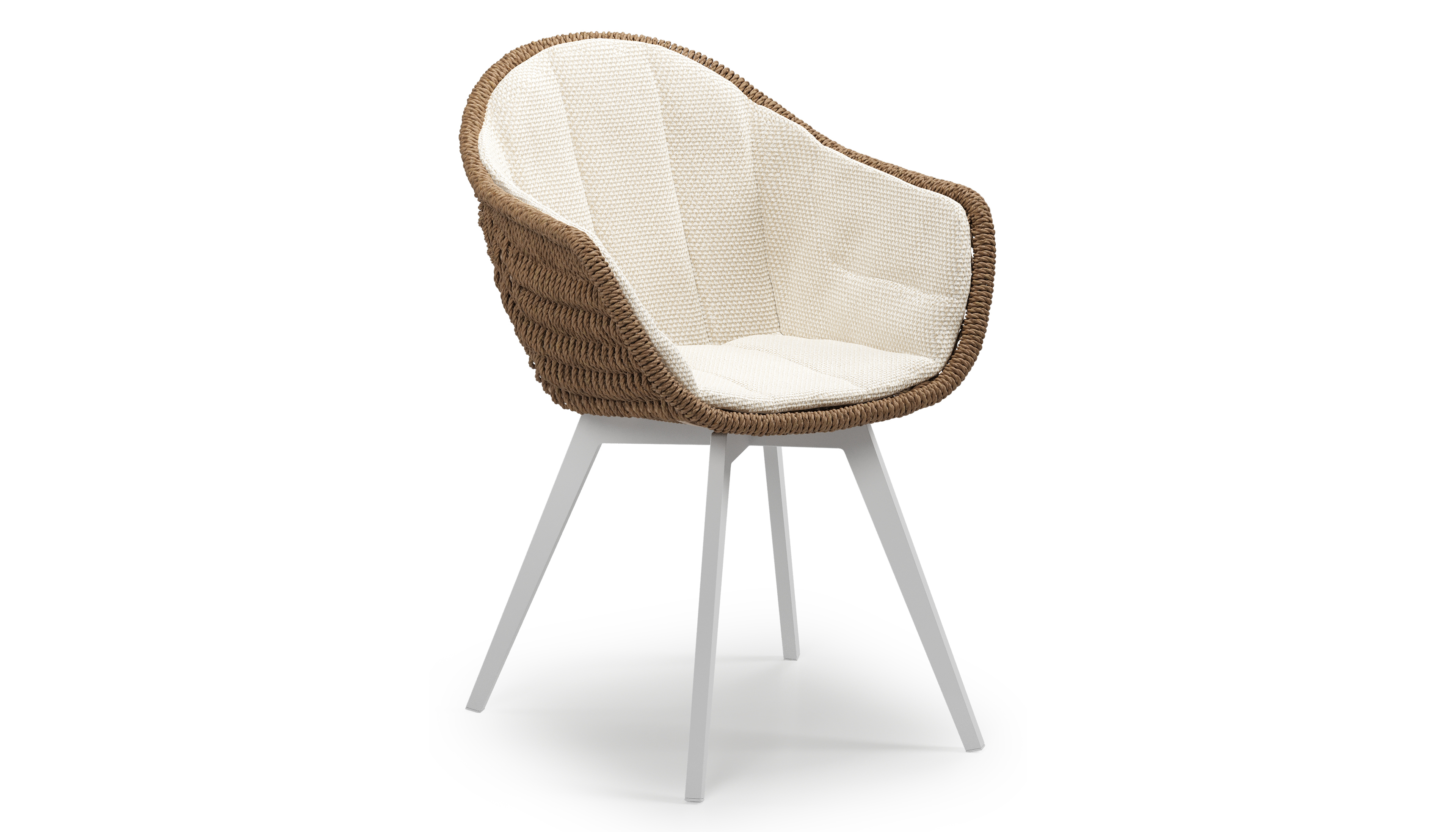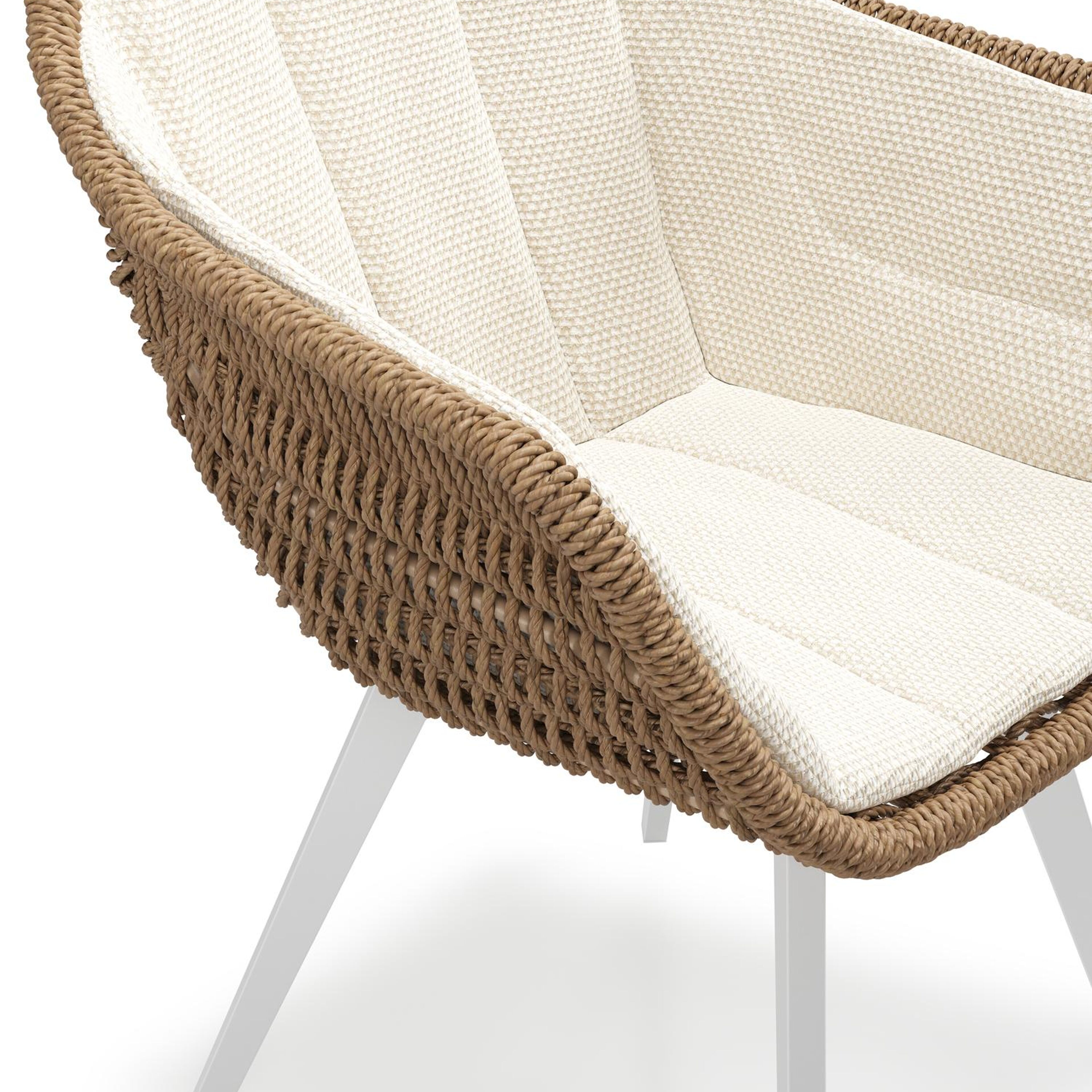 Pagino tuinstoel in wit aluminium en bruin ronde wicker met zitkussen in All Weather Cosytica Althea Off White | Exterioo tuinmeubelen