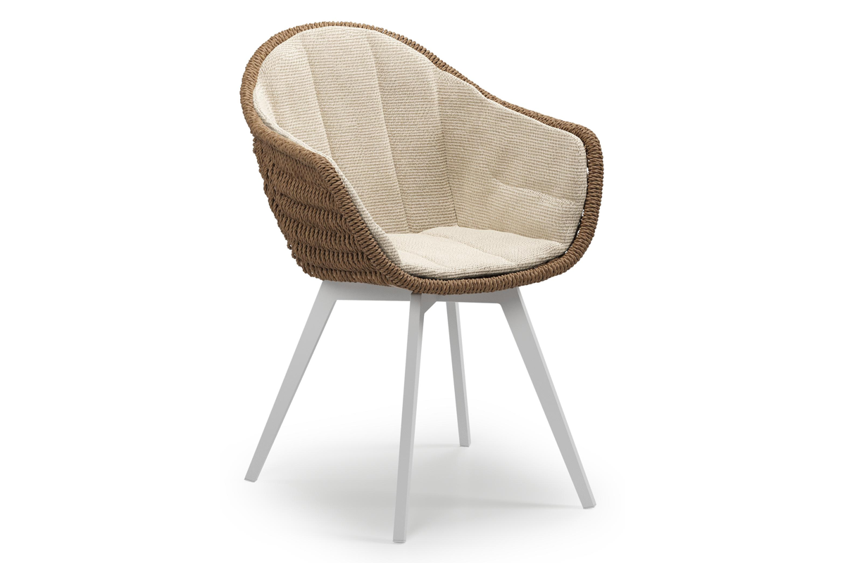 Pagino tuinstoel in wit aluminium en bruin ronde wicker met zitkussen in All Weather Cosytica Althea Chalk | Exterioo
