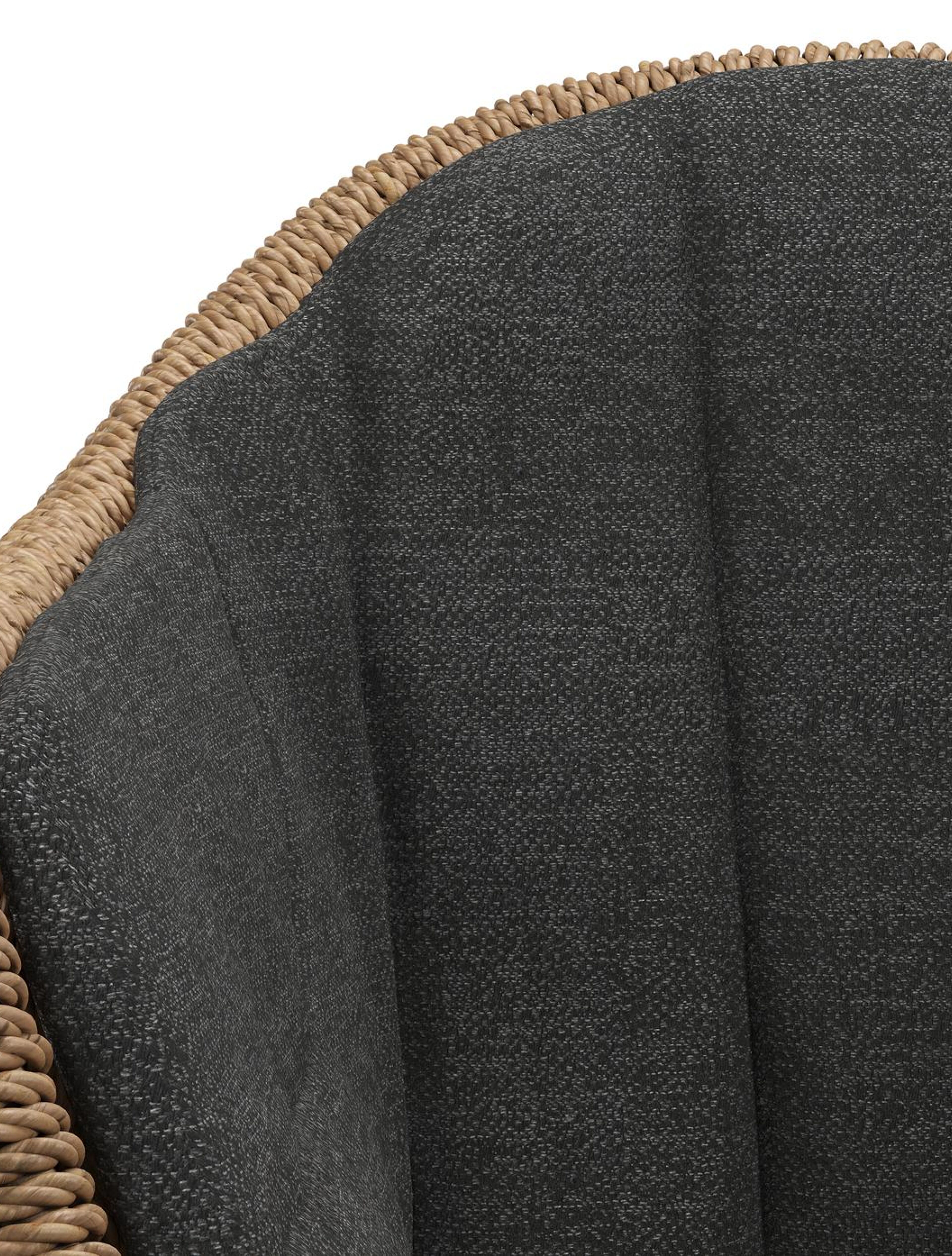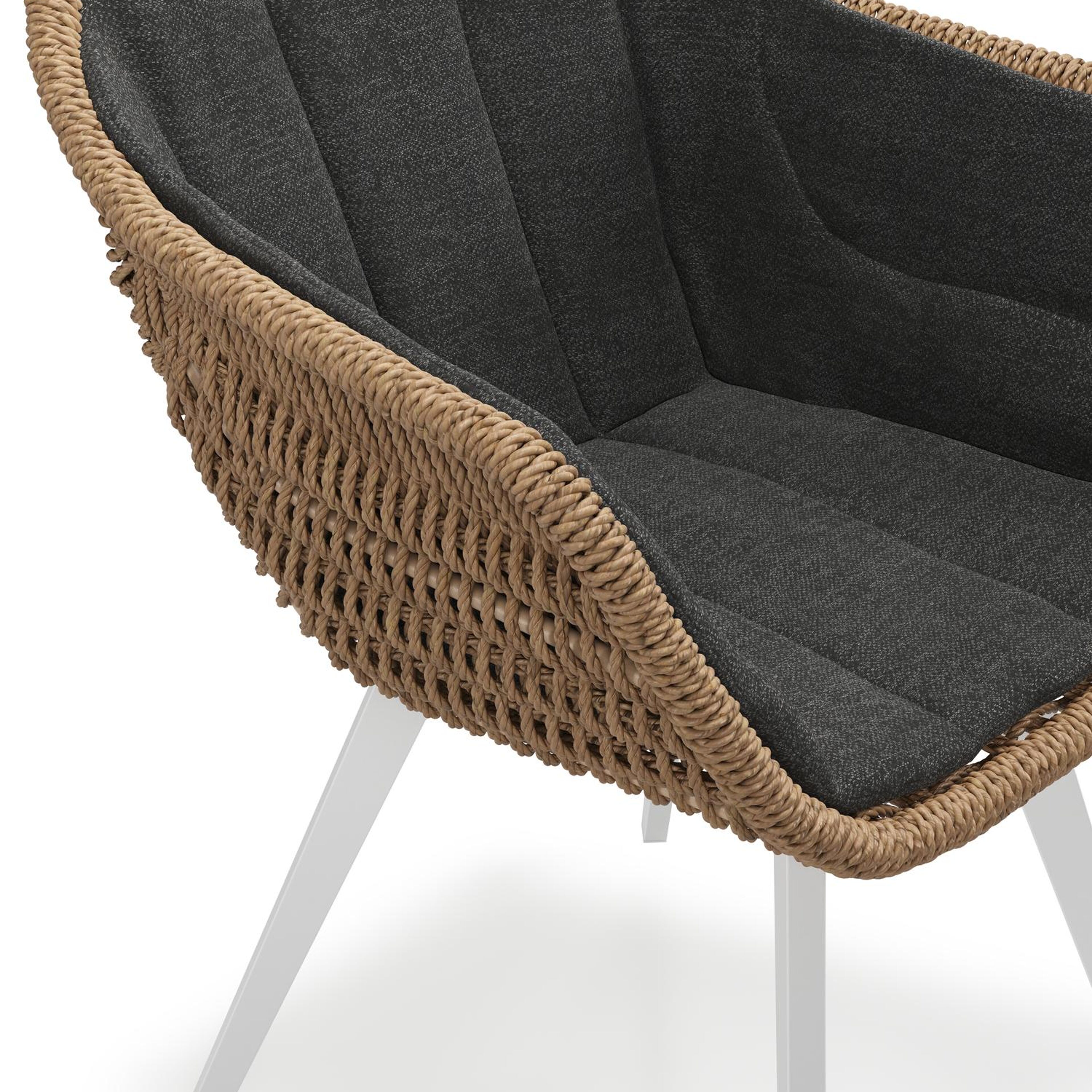 Pagino tuinstoel in wit aluminium en bruin ronde wicker met zitkussen in All Weather Sunbrella® Luxe Chartres Sooty | Exterioo tuinmeubelen