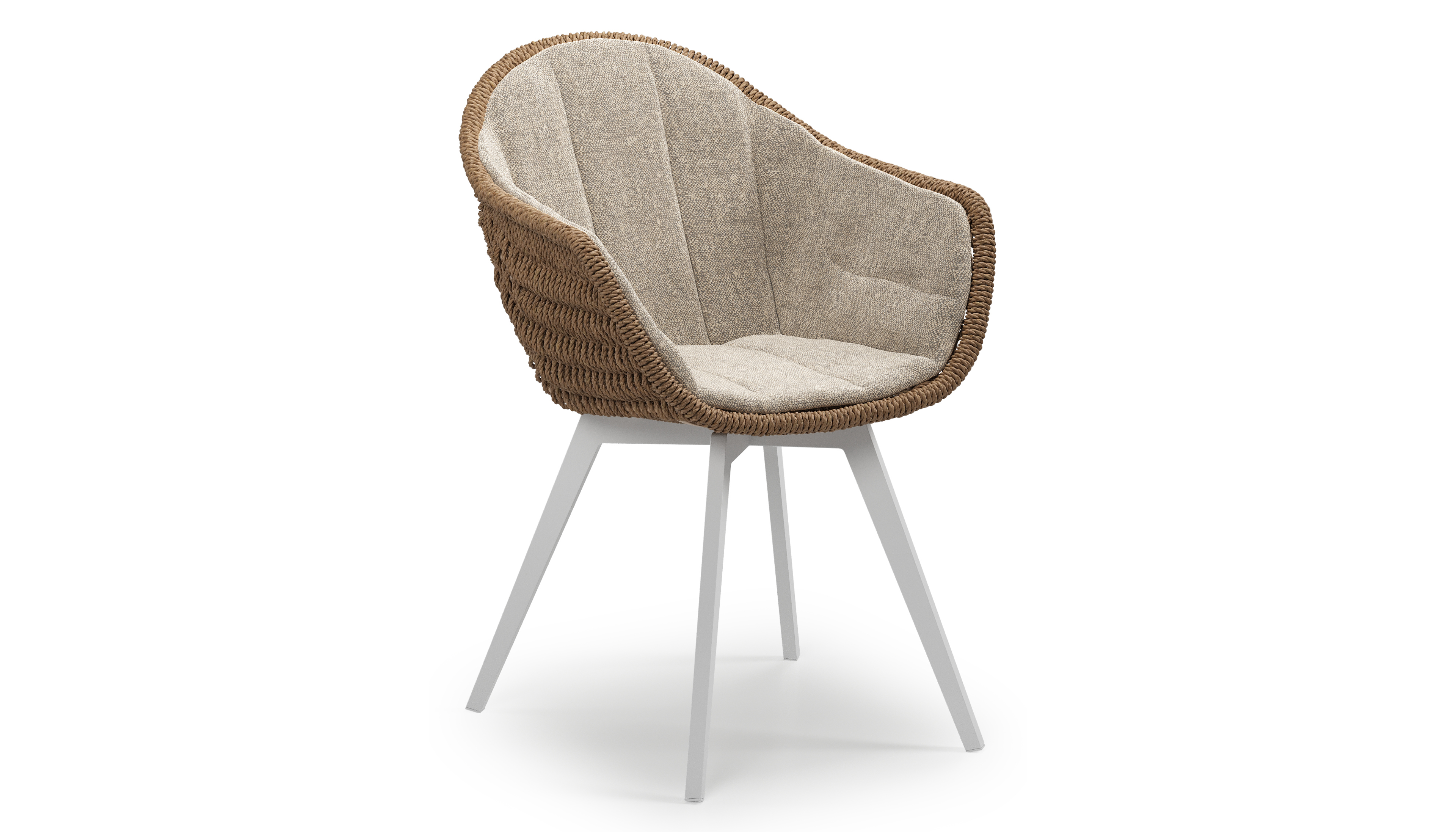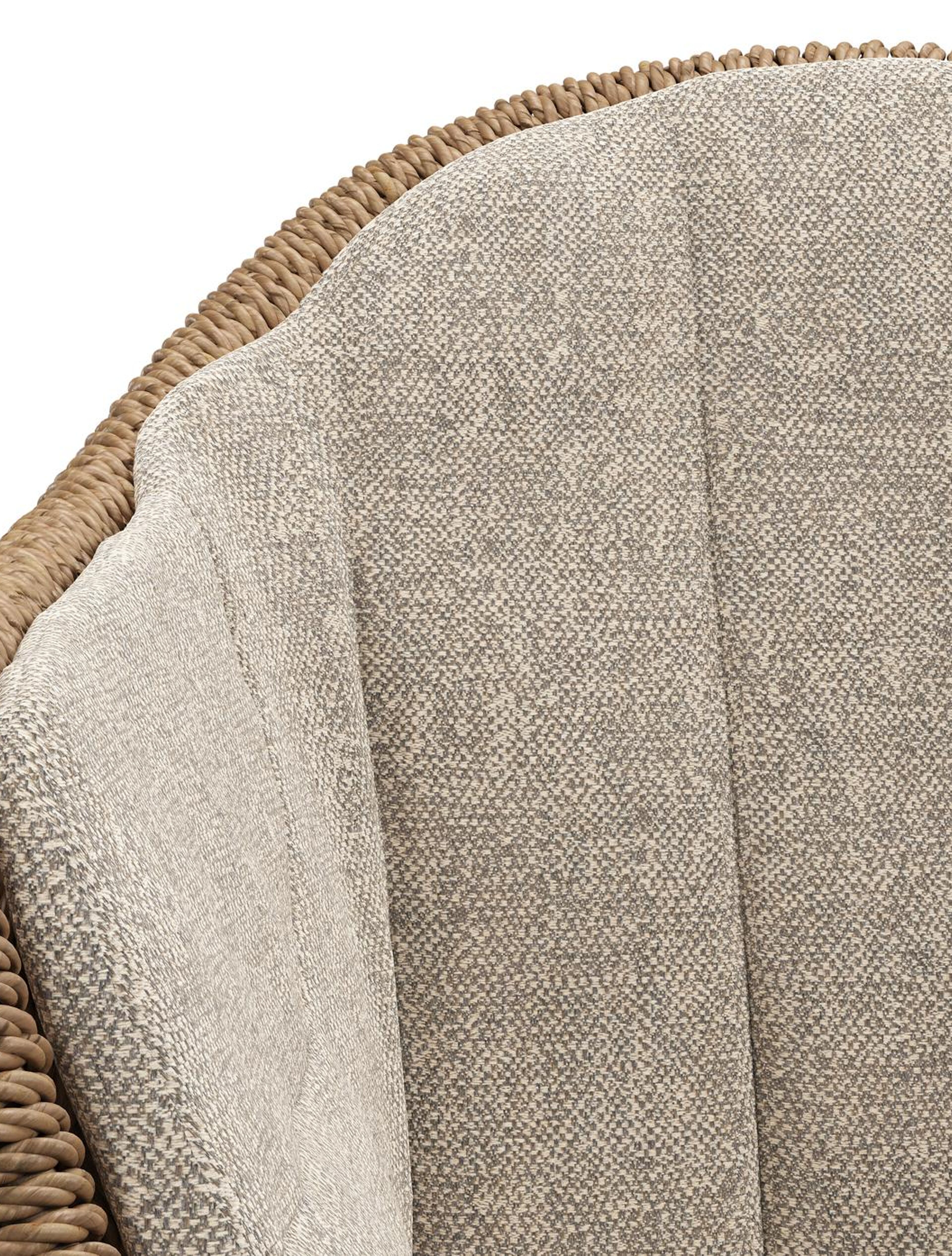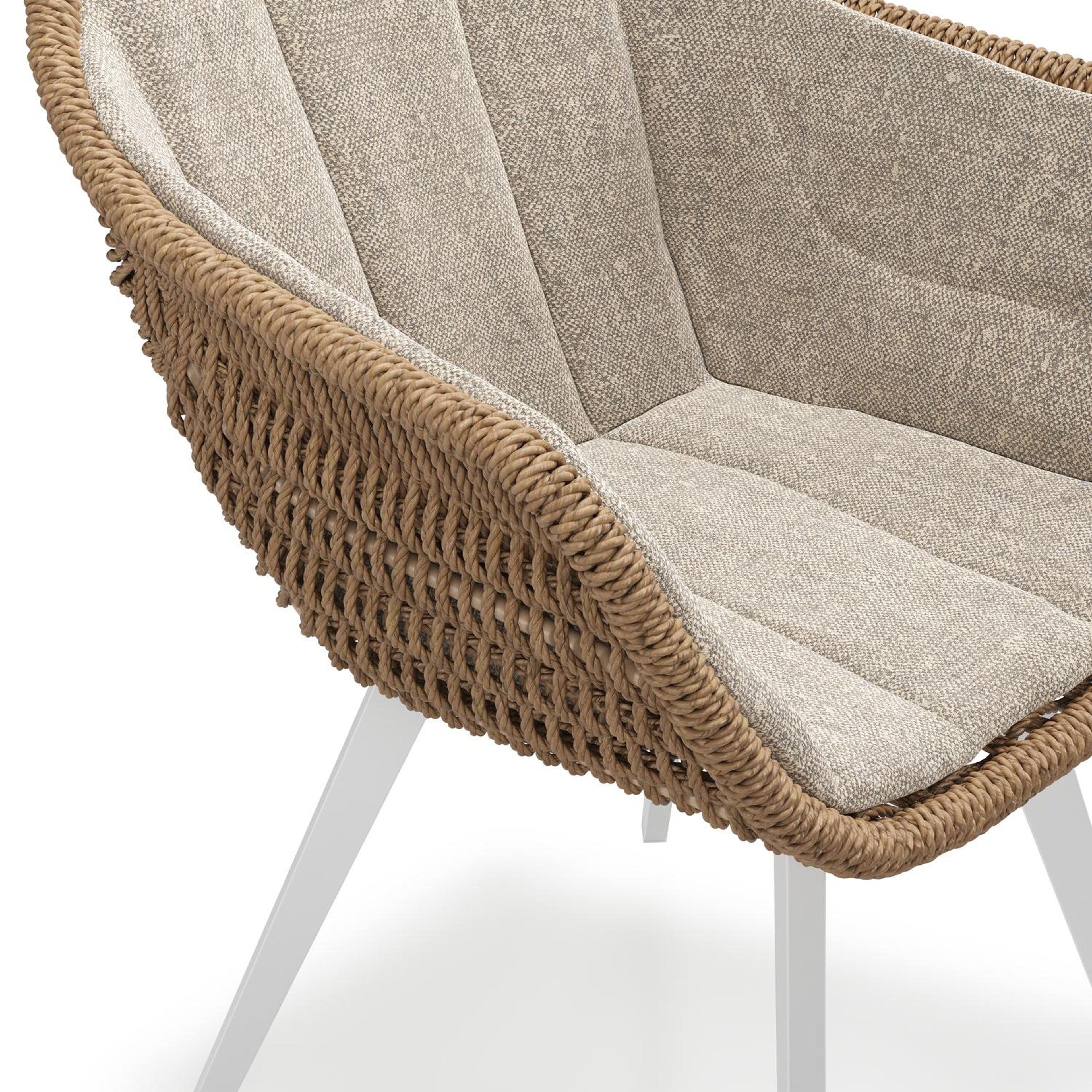 Pagino tuinstoel in wit aluminium en bruin ronde wicker met zitkussen in All Weather Sunbrella® Luxe Chartres Pewter | Exterioo tuinmeubelen