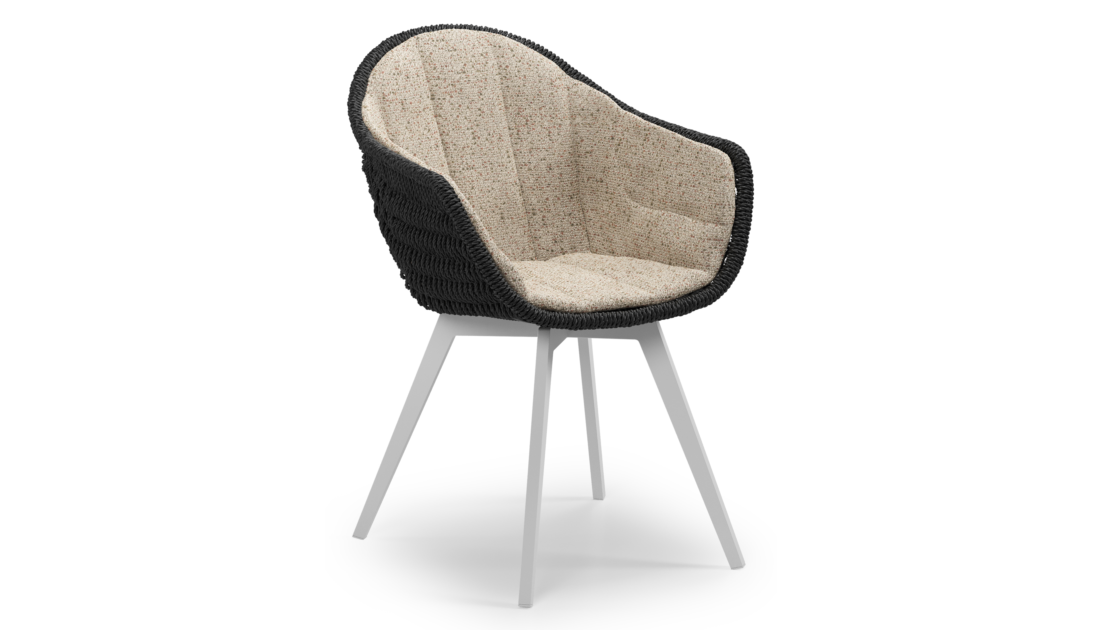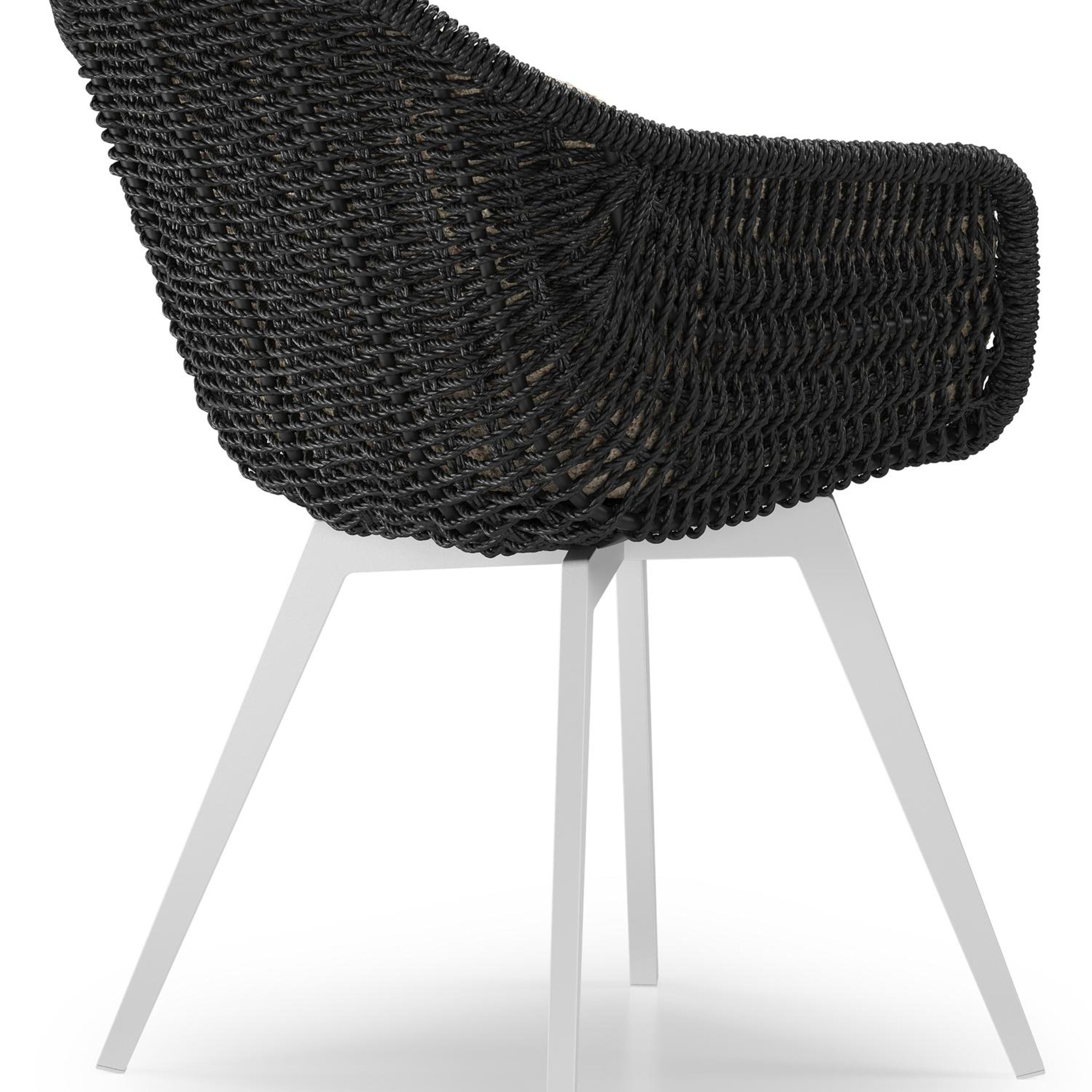 Pagino tuinstoel in wit aluminium en zwart ronde wicker met zitkussen in All Weather Cosytica Bora Jungle | Exterioo tuinmeubelen