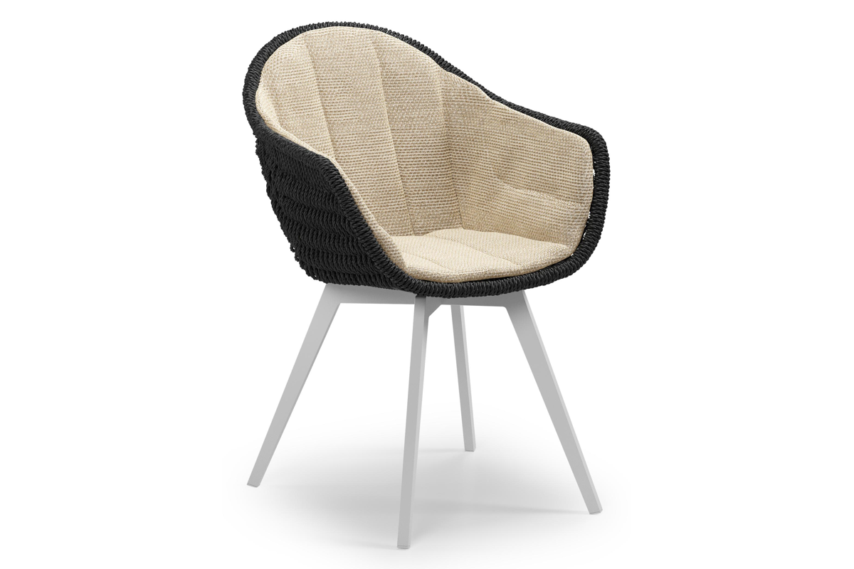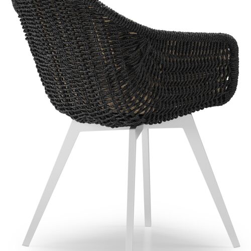 Pagino tuinstoel in wit aluminium en zwart ronde wicker met zitkussen in All Weather Cosytica Althea Camel | Exterioo