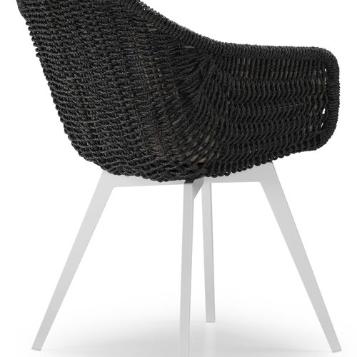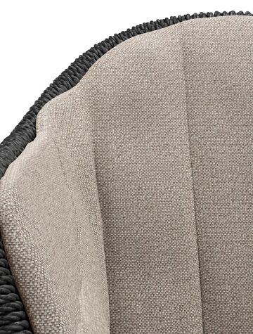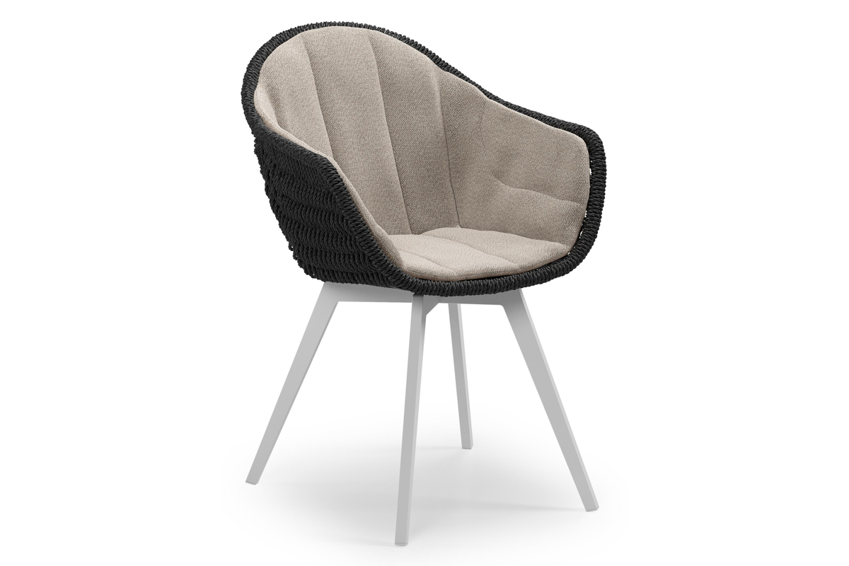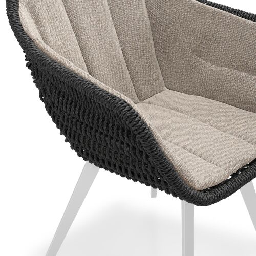 Pagino tuinstoel in wit aluminium en zwart ronde wicker met zitkussen in All Weather Sunbrella® Luxe Savane Coconut | Exterioo