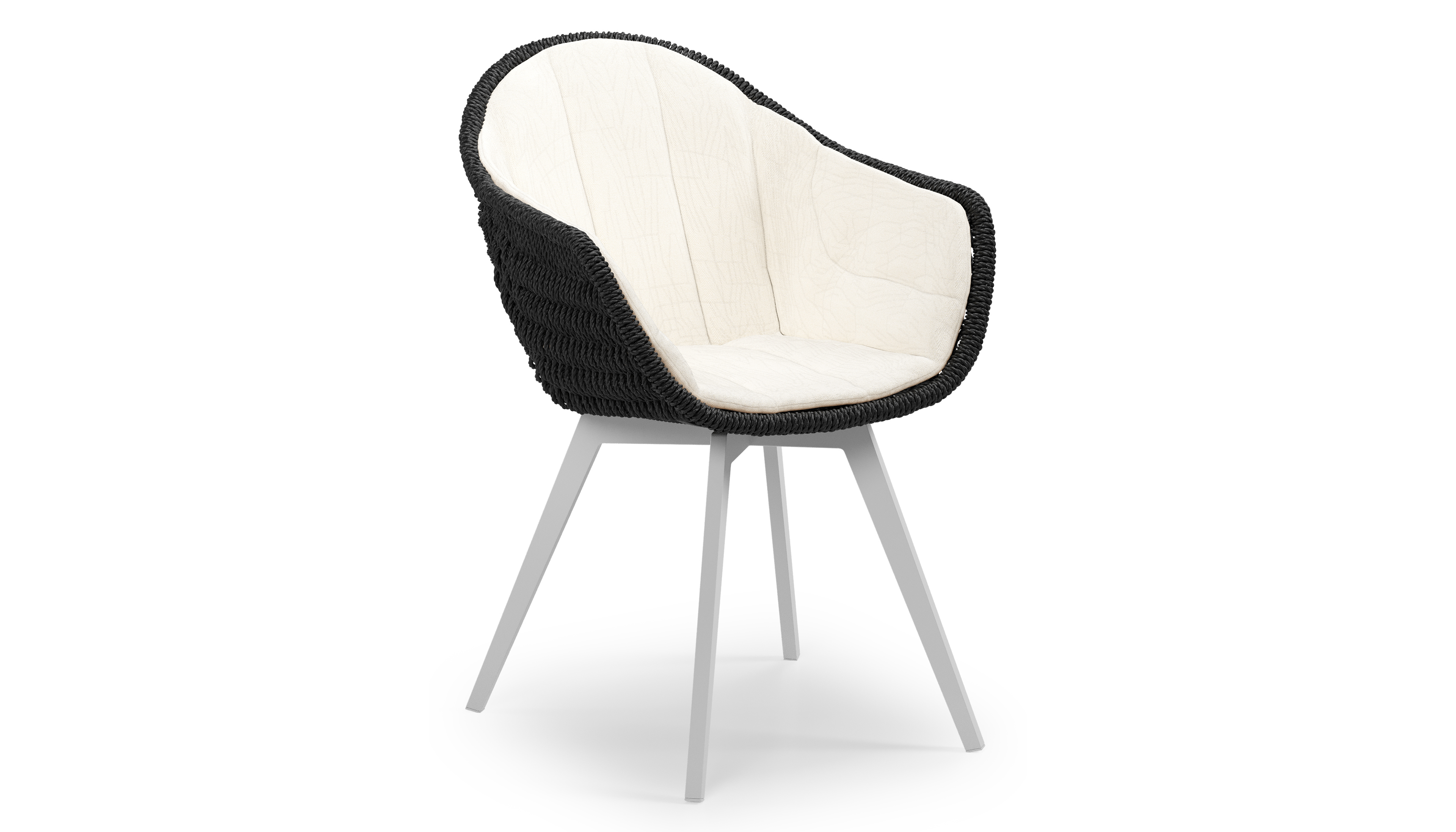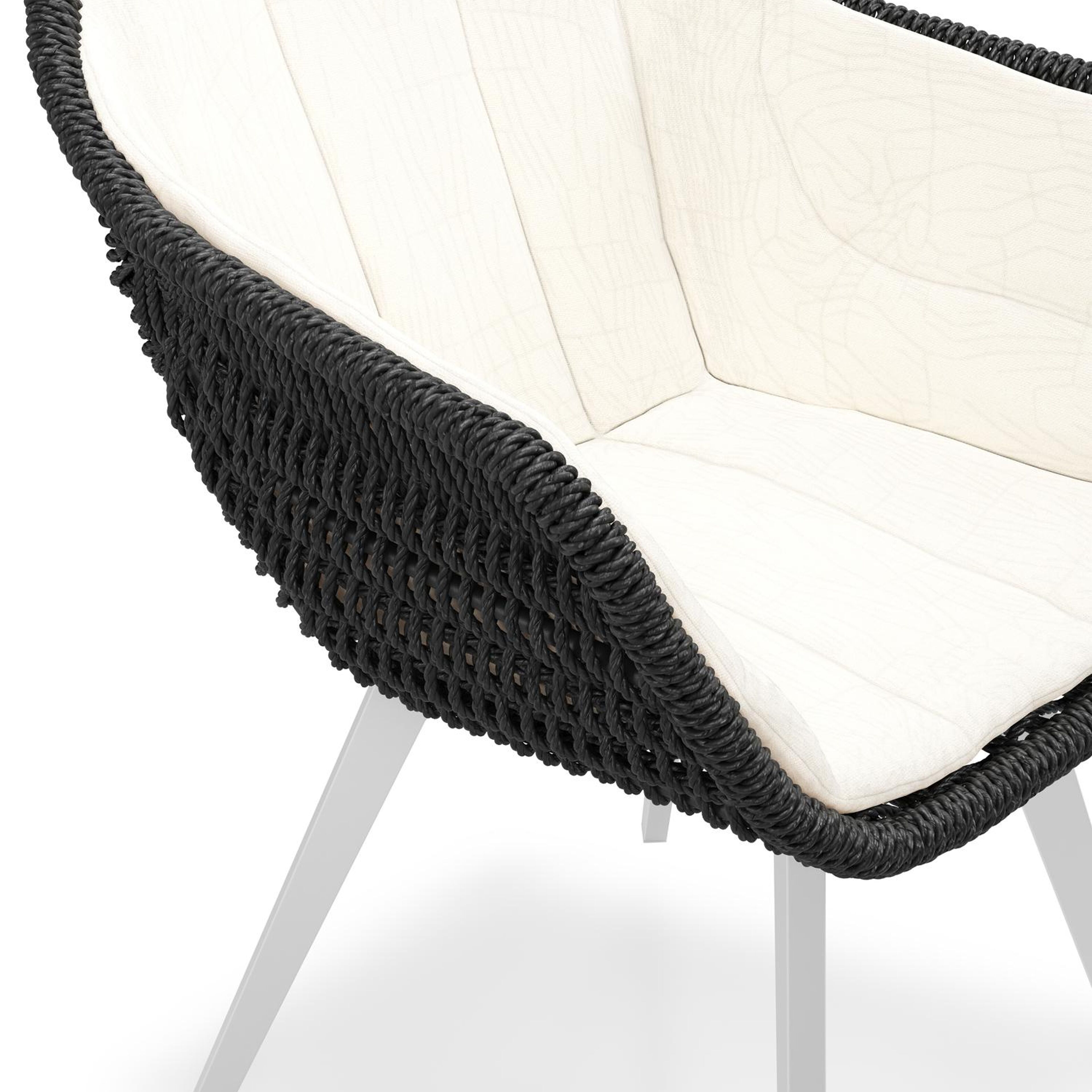 Pagino tuinstoel in wit aluminium en zwart ronde wicker met zitkussen in All Weather Sunbrella® Luxe Natte White | Exterioo tuinmeubelen