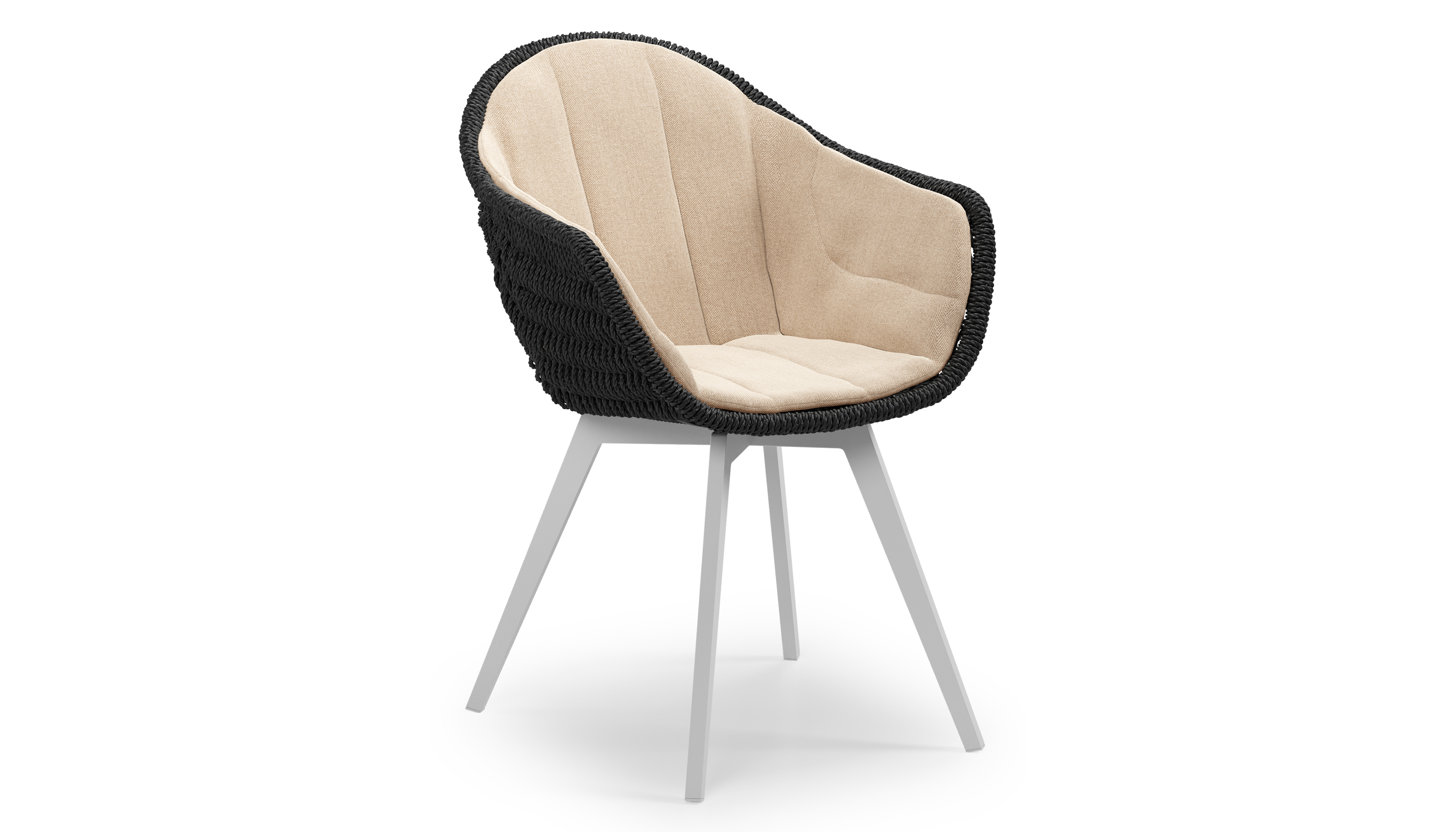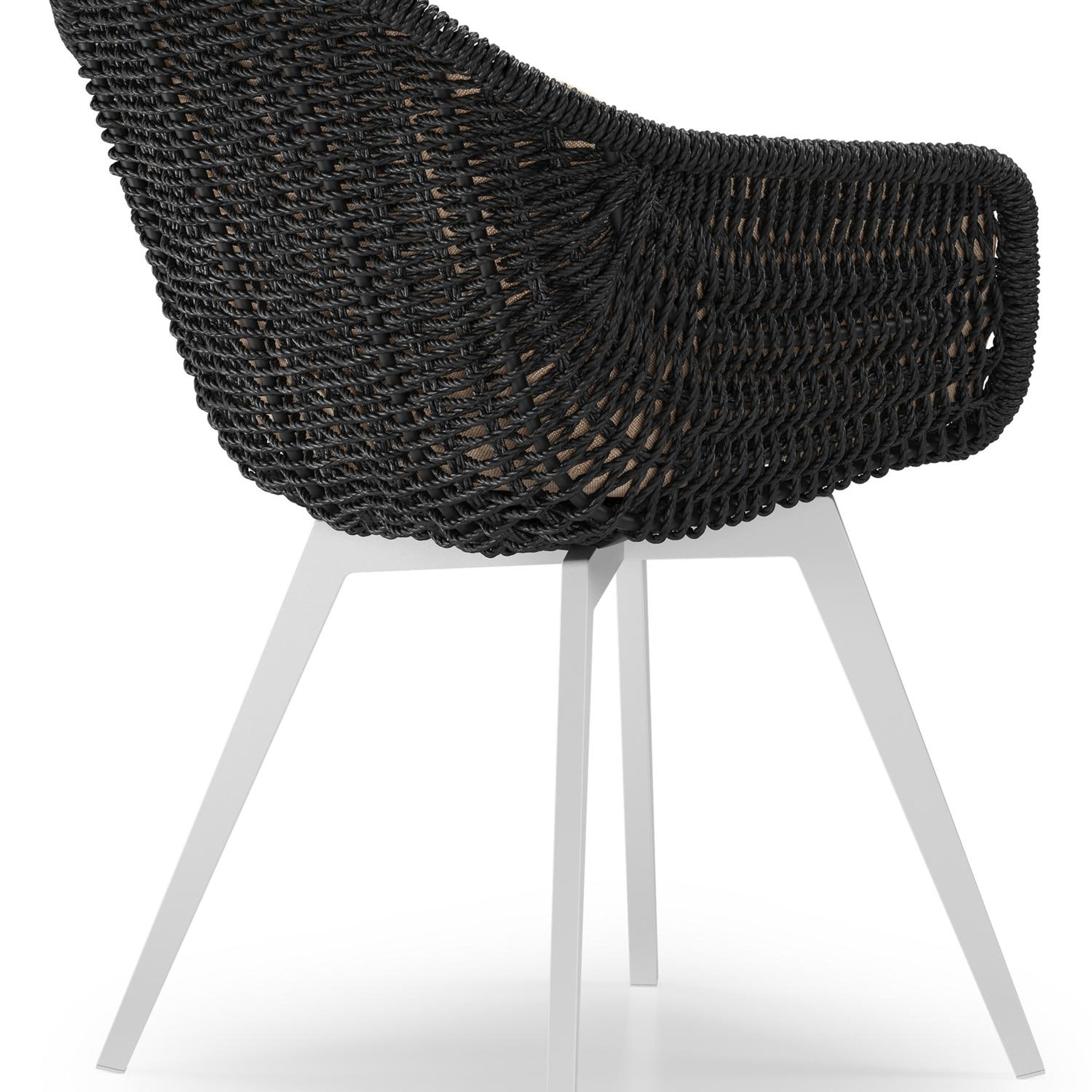 Pagino tuinstoel in wit aluminium en zwart ronde wicker met zitkussen in All Weather Sunbrella® Luxe Natte Heather Beige | Exterioo tuinmeubelen