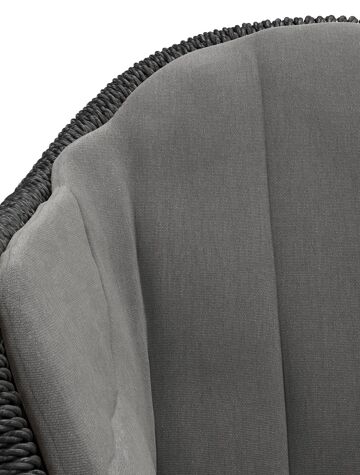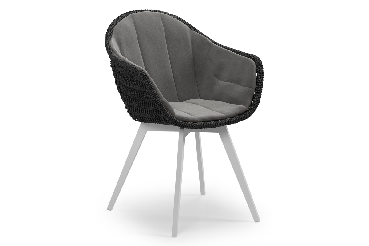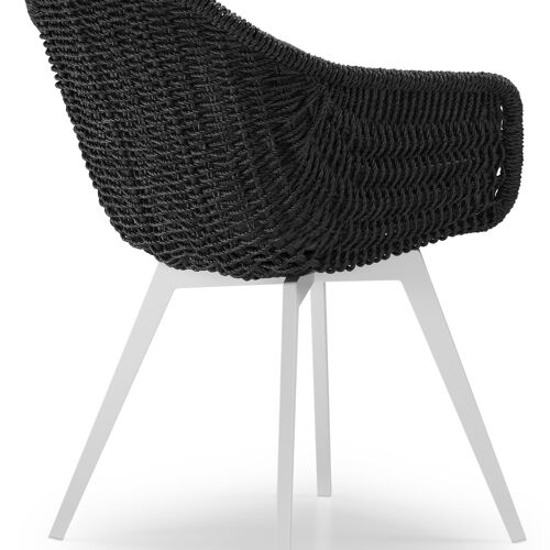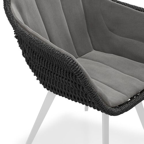 Pagino tuinstoel in wit aluminium en zwart ronde wicker met zitkussen in All Weather Sunbrella® Luxe Natte Charcoal Chine | Exterioo