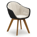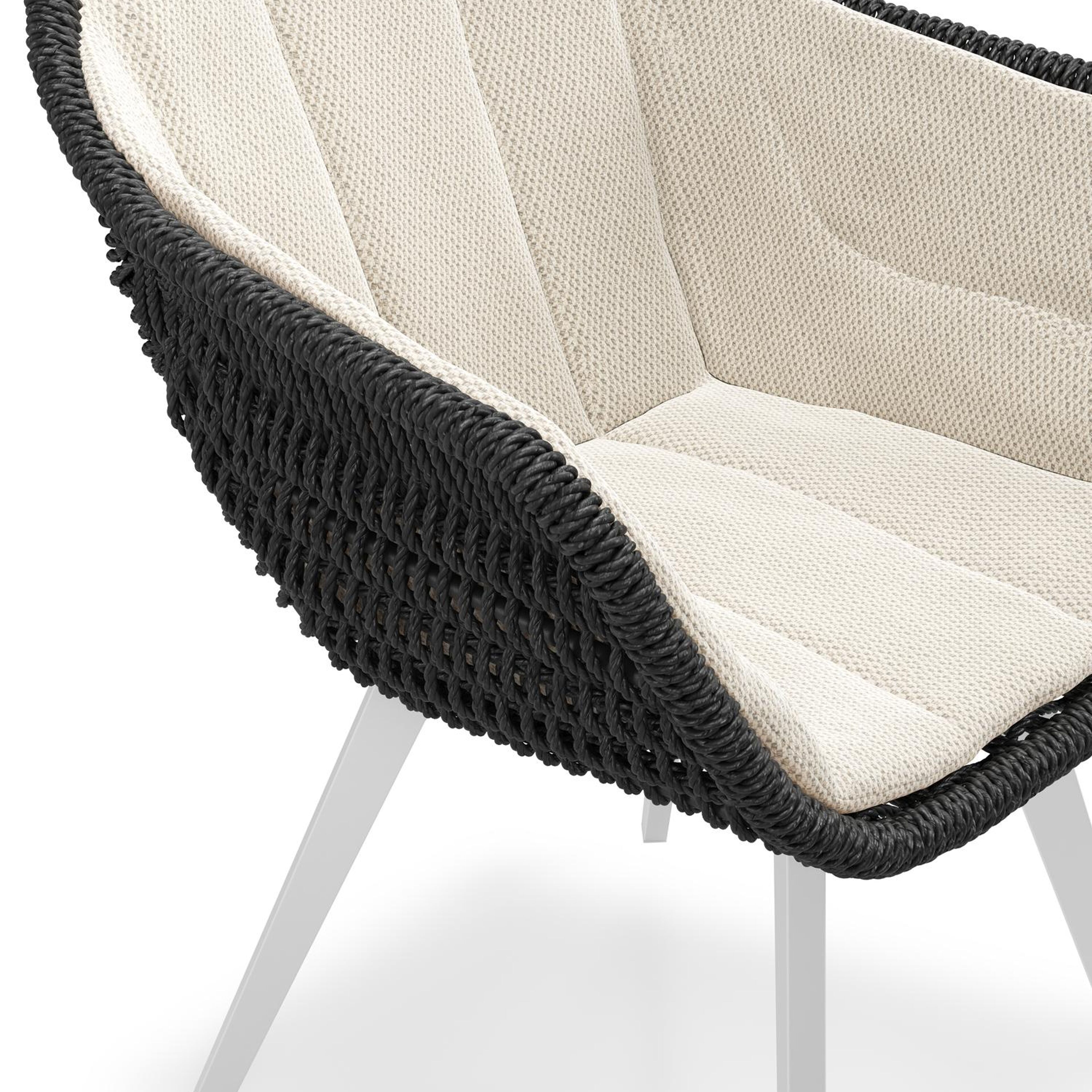 Pagino tuinstoel in wit aluminium en zwart ronde wicker met zitkussen in All Weather Sunbrella® Luxe Lopi Marble | Exterioo tuinmeubelen