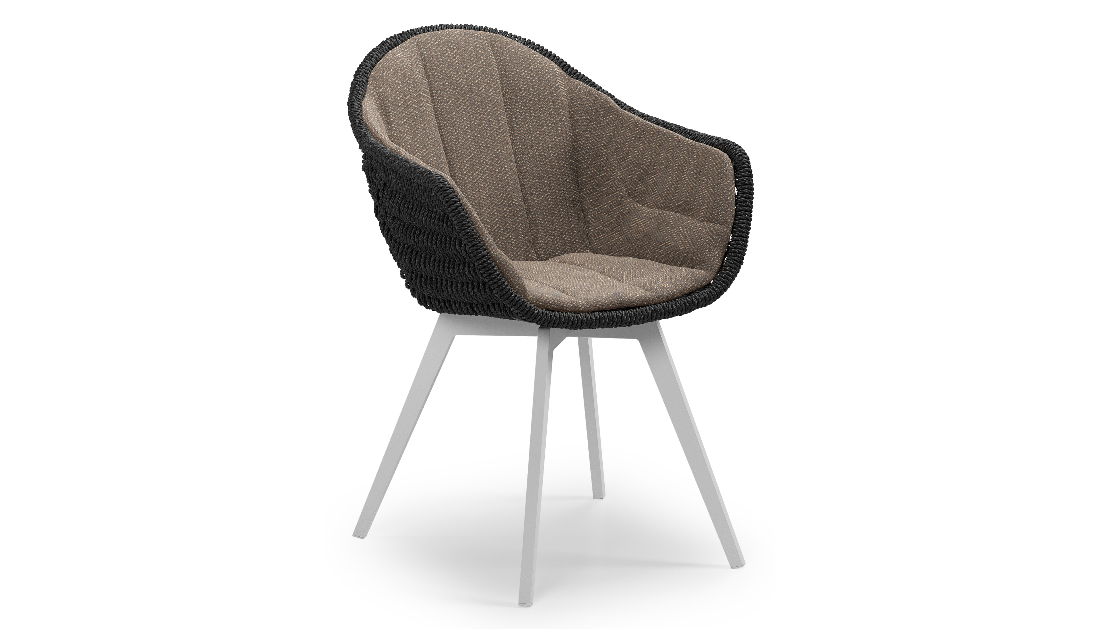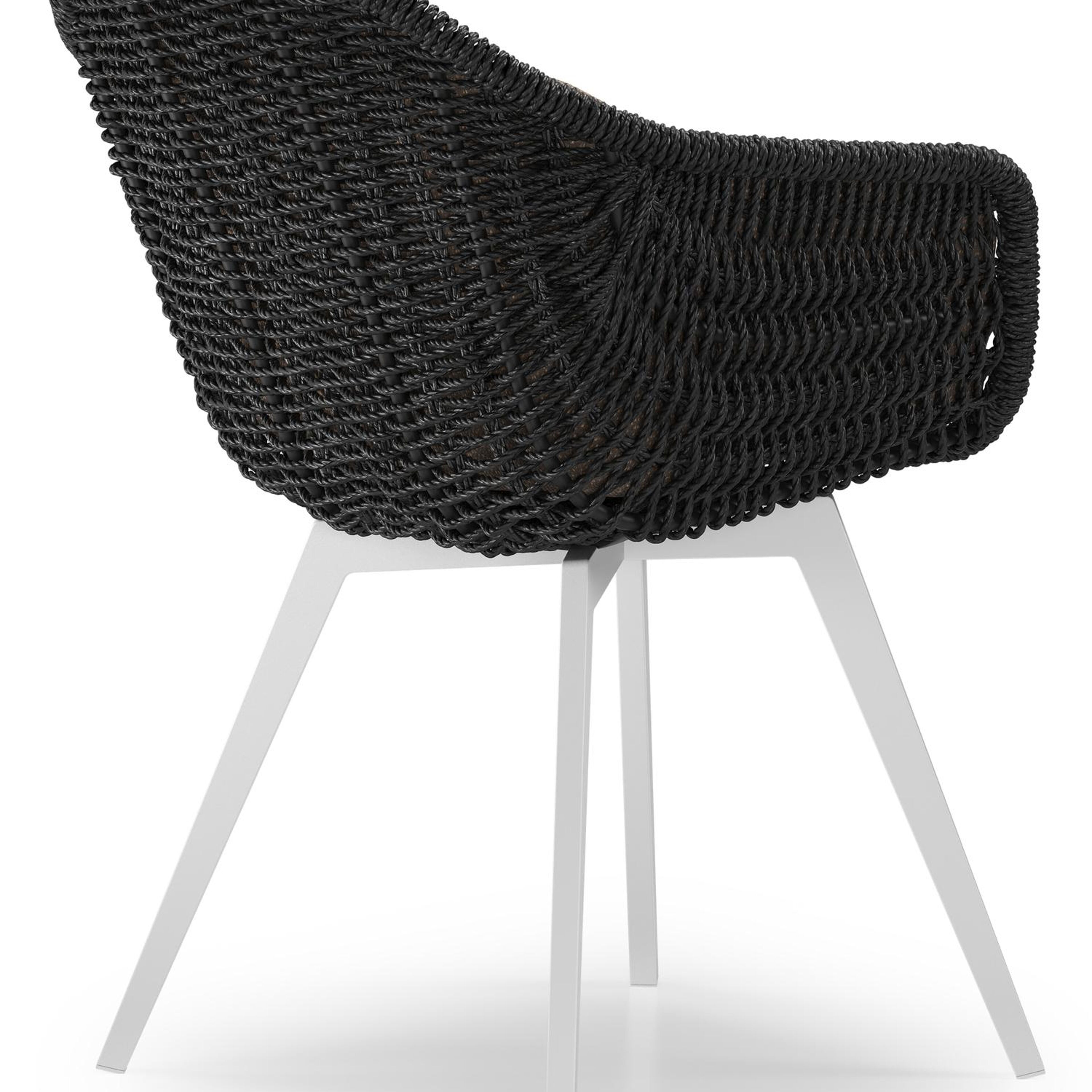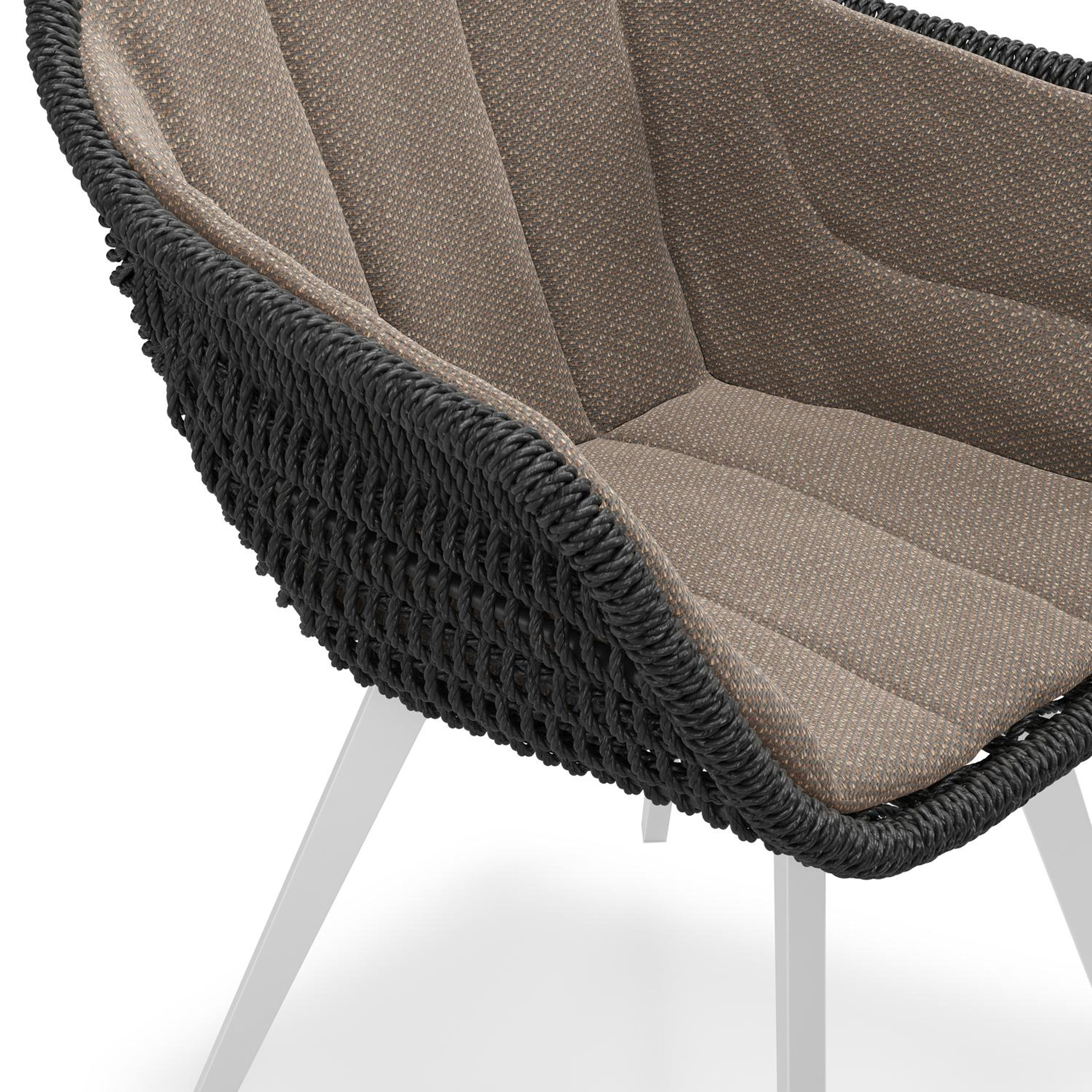 Pagino tuinstoel in wit aluminium en zwart ronde wicker met zitkussen in All Weather Sunbrella® Luxe Lopi Coconut | Exterioo tuinmeubelen