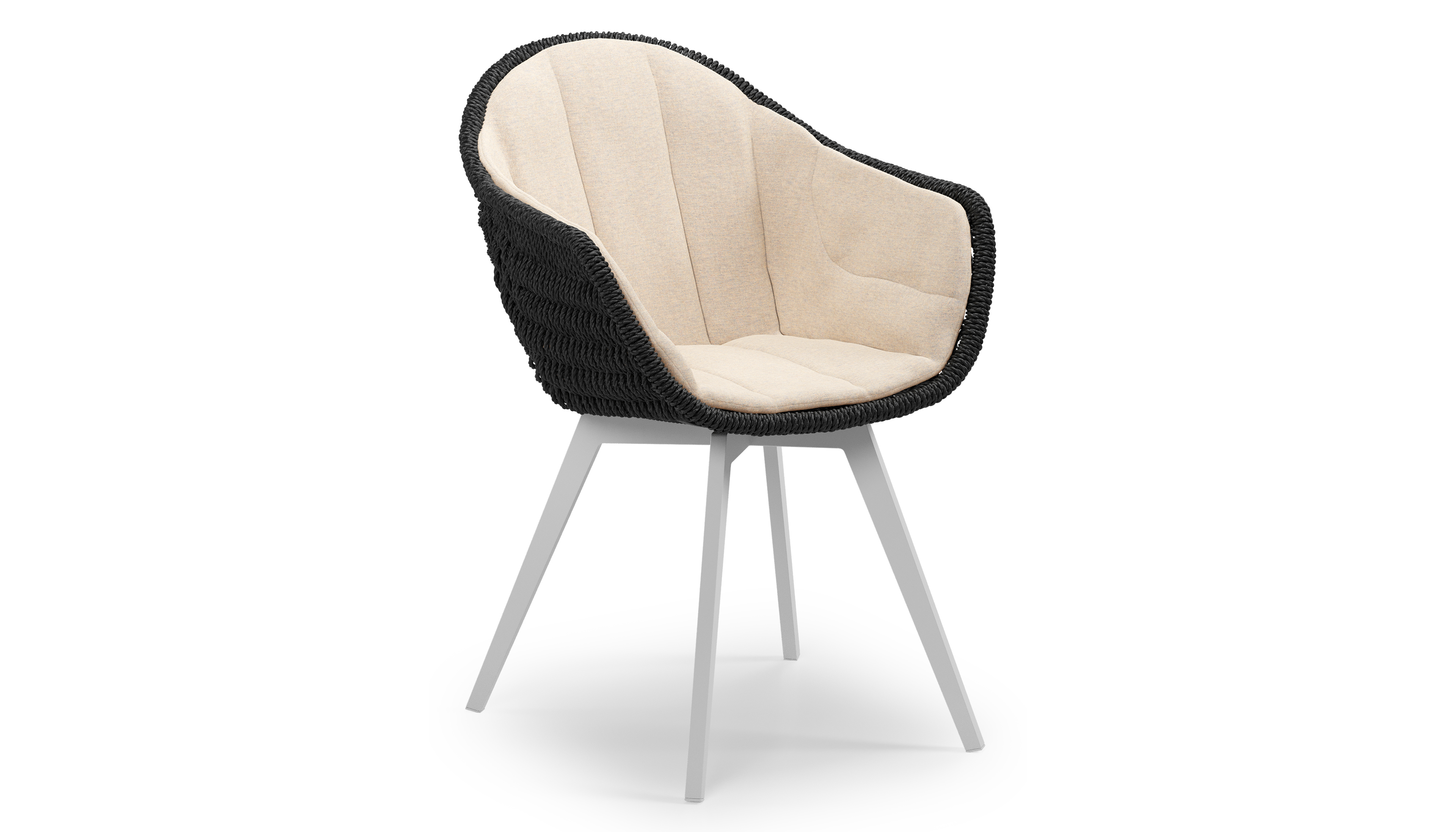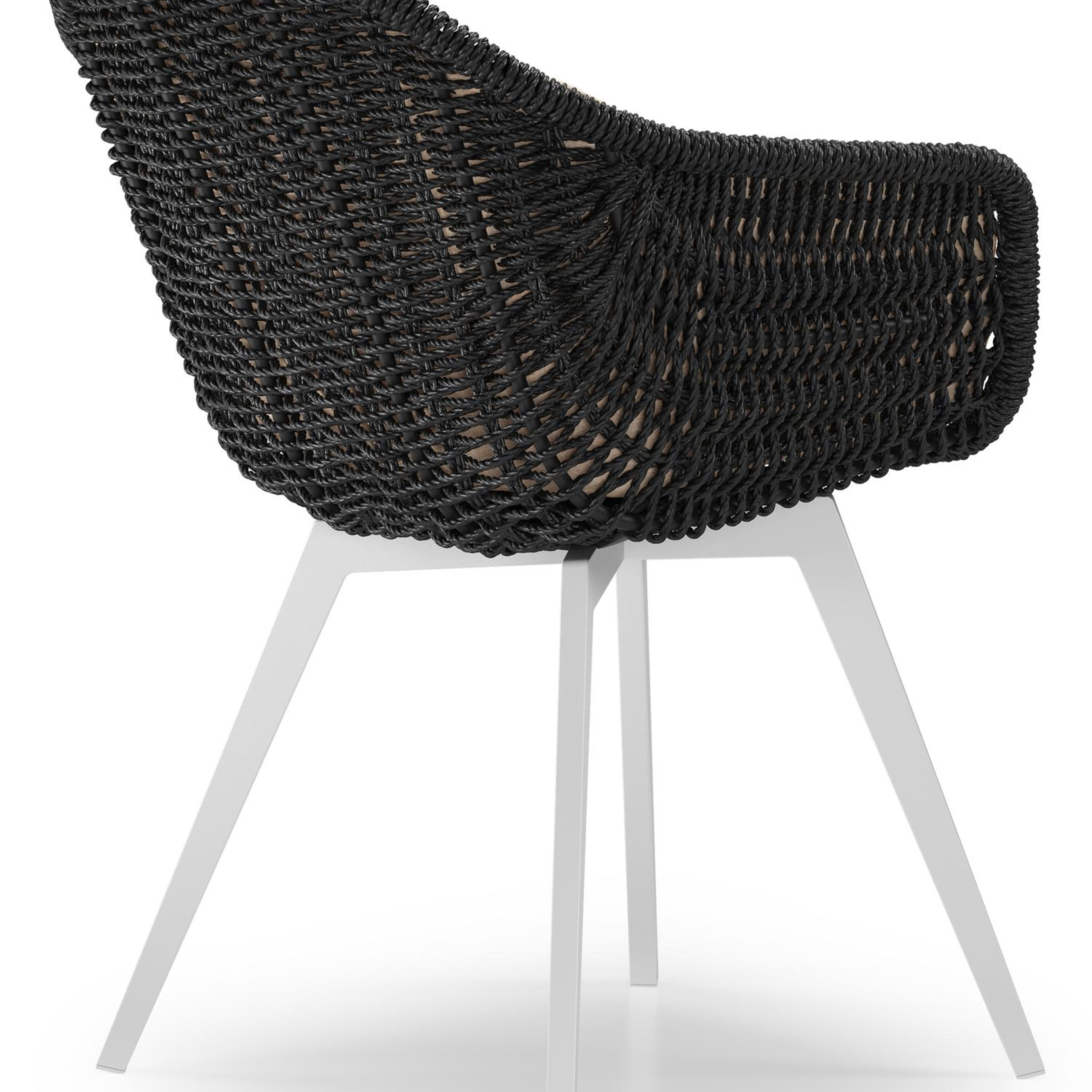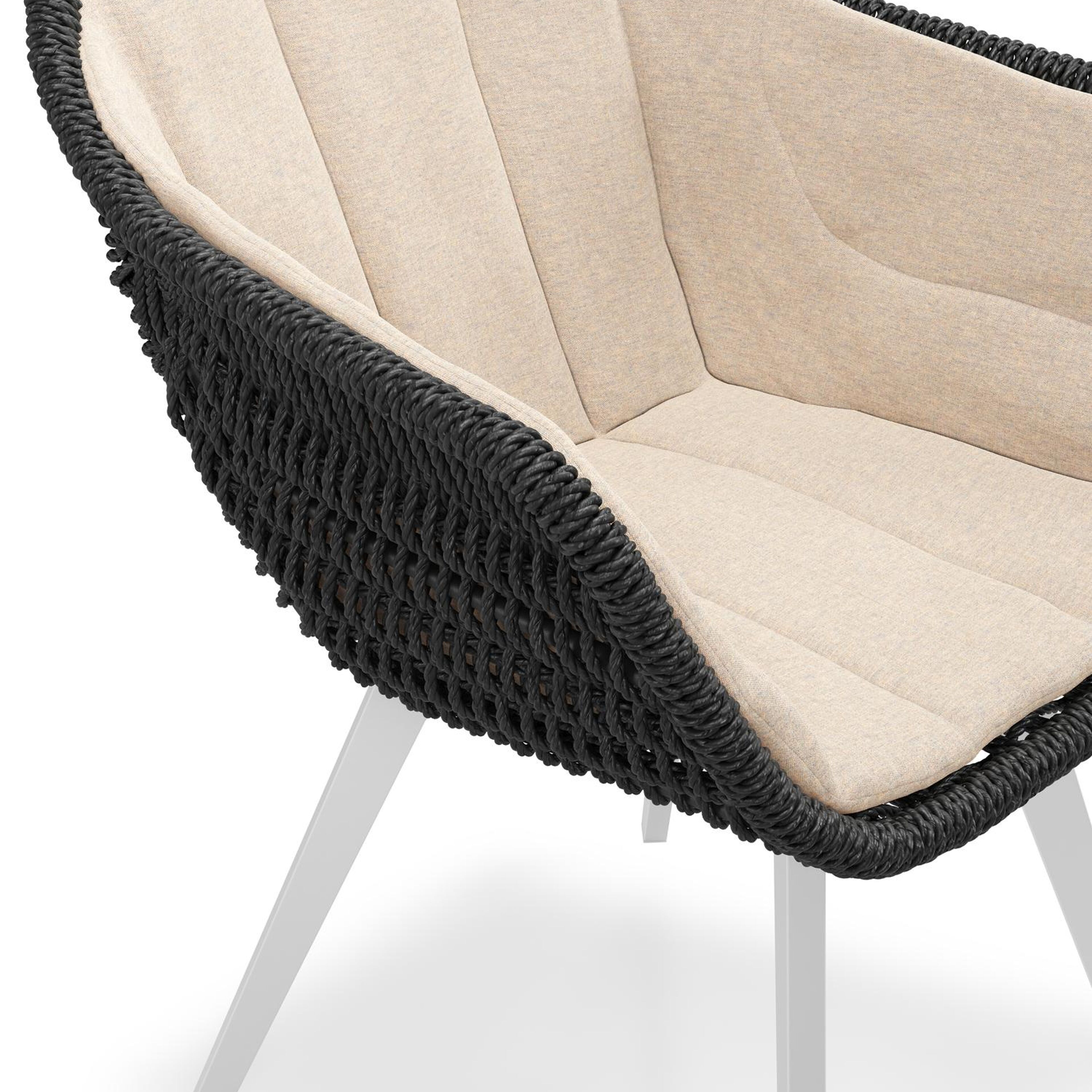 Pagino tuinstoel in wit aluminium en zwart ronde wicker met zitkussen in All Weather Sunbrella® Luxe Heritage Papyrus | Exterioo tuinmeubelen