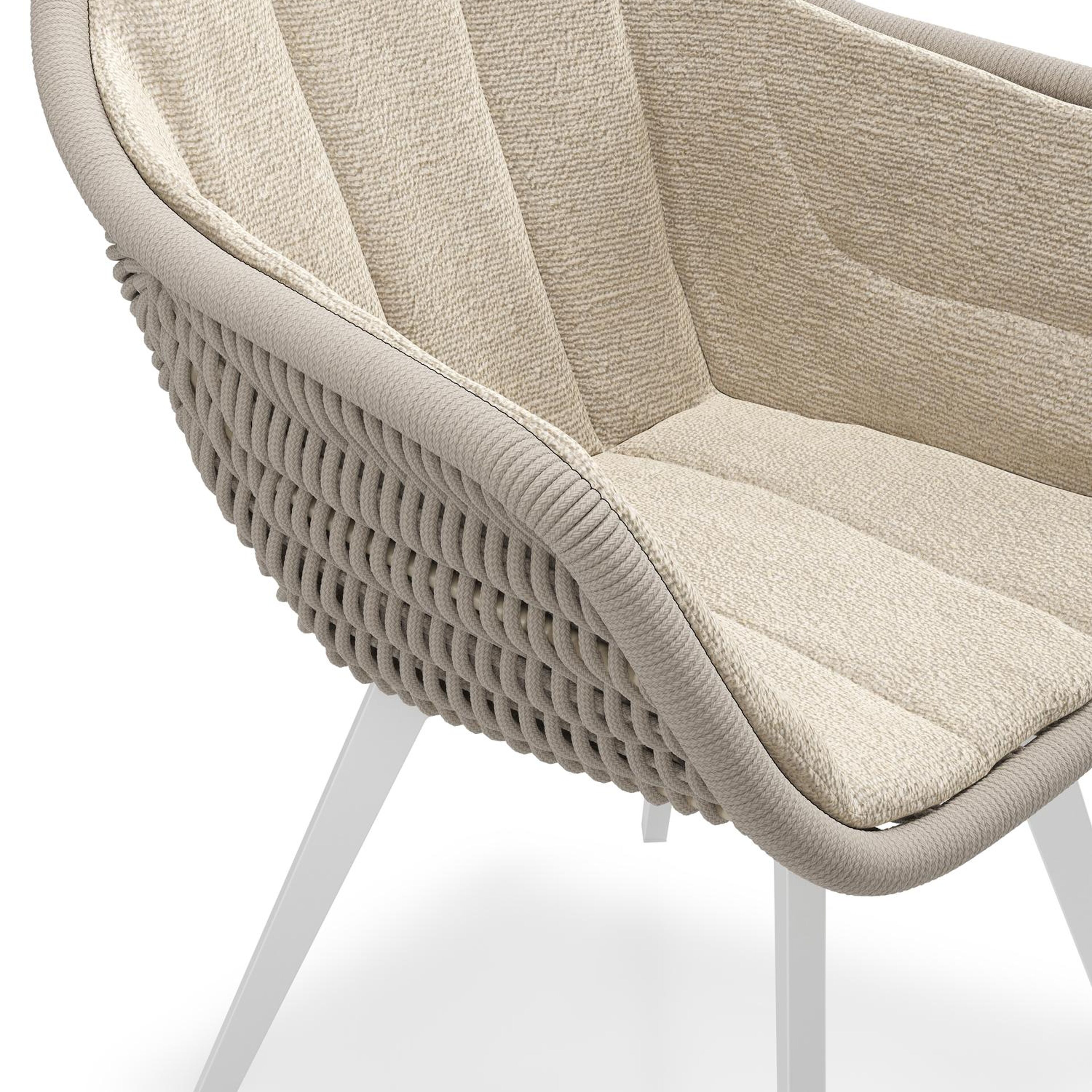 Pagino tuinstoel in wit aluminium en beige verticaal geweven ronde rope met zitkussen in All Weather Cosytica Marbella Sand | Exterioo tuinmeubelen