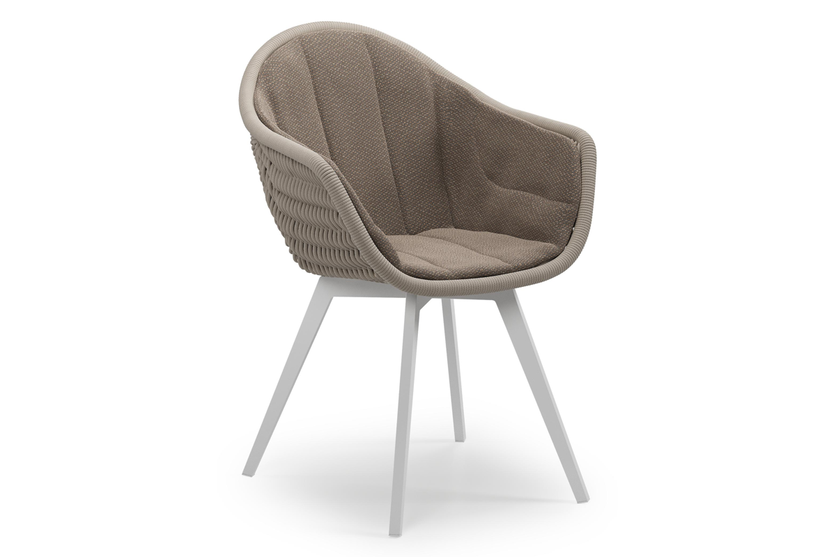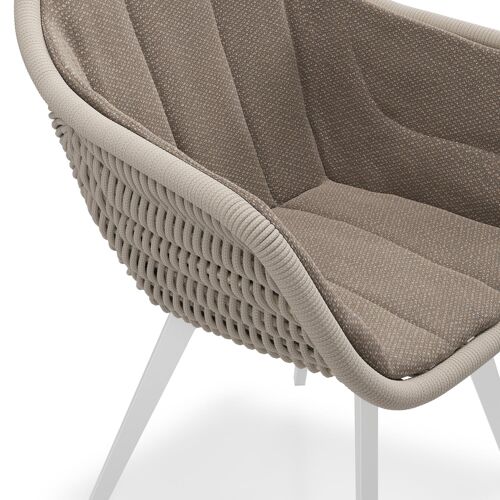 Pagino tuinstoel in wit aluminium en beige verticaal geweven ronde rope met zitkussen in All Weather Sunbrella® Luxe Lopi Coconut | Exterioo