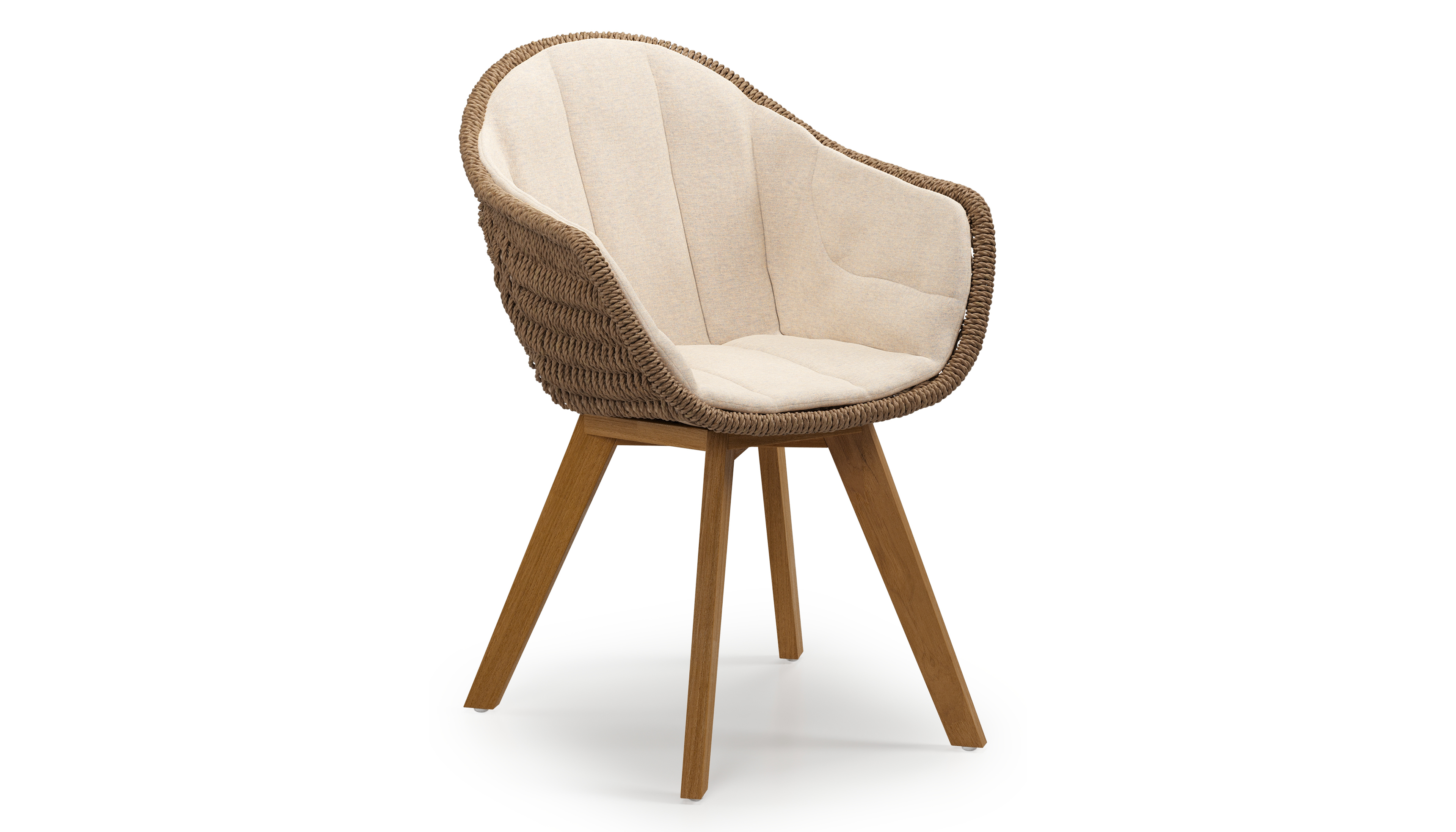 Pagino tuinstoel in teak en bruin ronde wicker met kussen in heritage papyrus all weather sunbrella® luxe | Exterioo tuinmeubelen