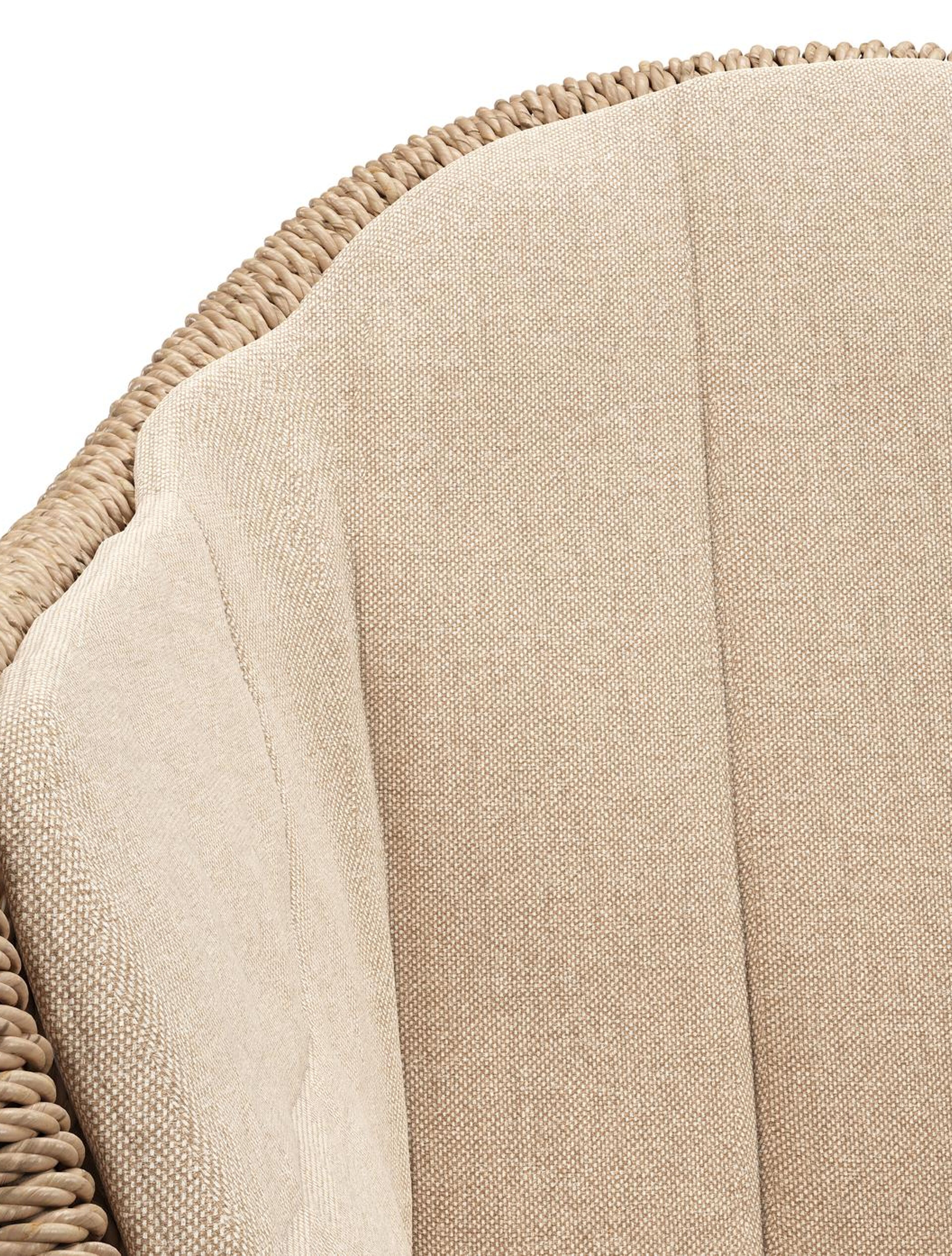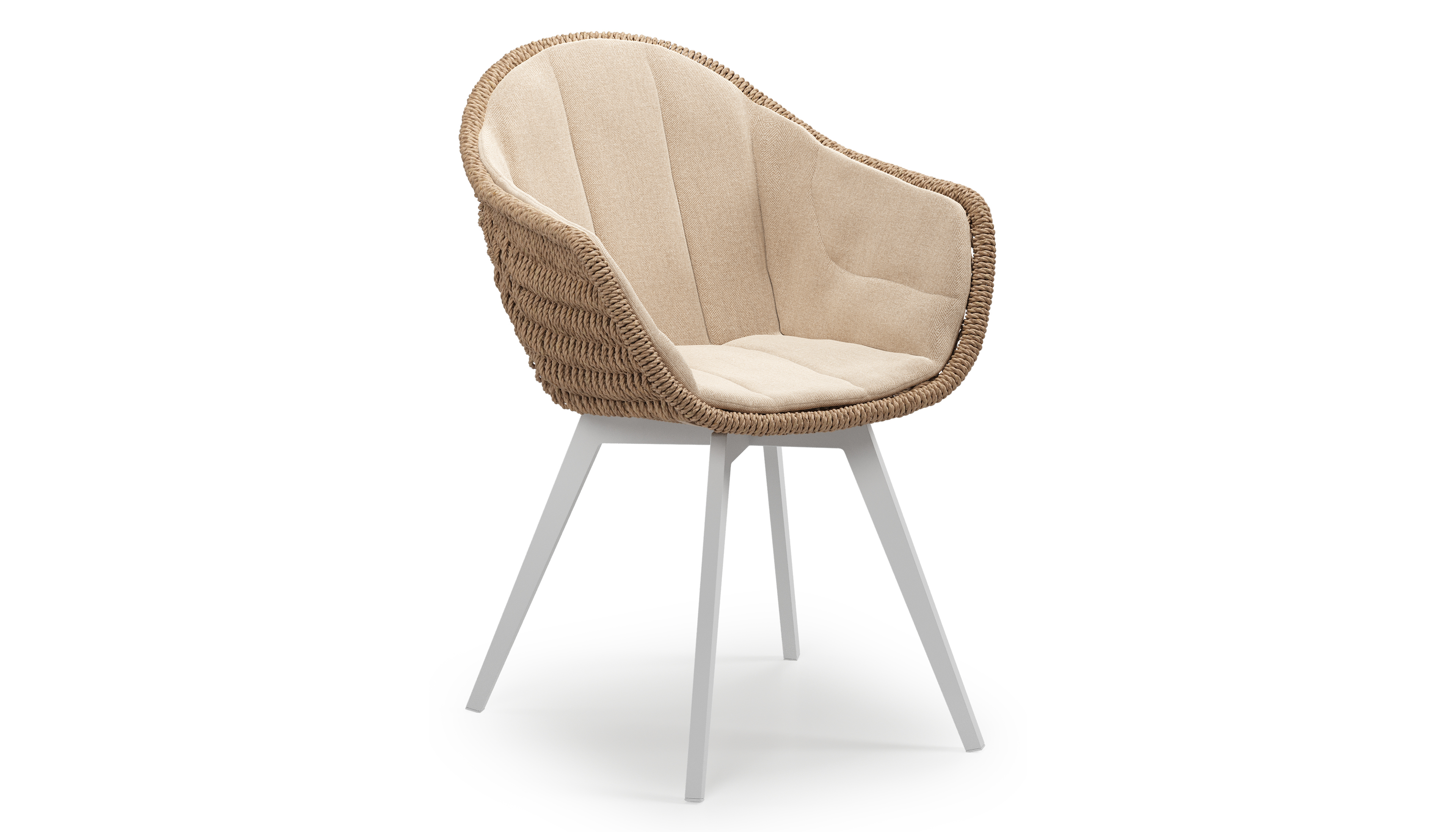 Pagino tuinstoel in wit aluminium en wit wicker met kussen in natte heather beige all weather sunbrella® luxe | Exterioo tuinmeubelen