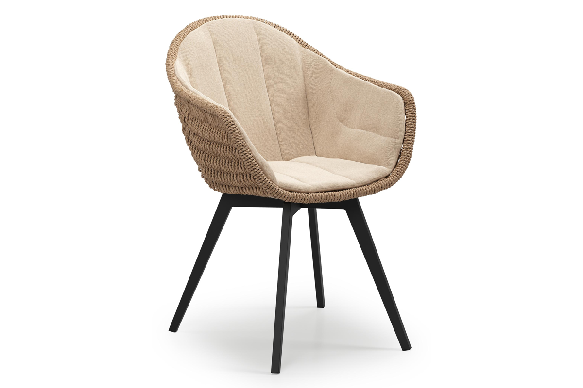 Pagino tuinstoel in zwart aluminium en zwart wicker met kussen in natte heather beige all weather sunbrella® luxe | Exterioo