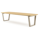 De Pagino tuintafel straalt een verfijnd en authentiek karakter uit, het punt waar jouw buitenmoment en de natuur elkaar raken door het oog voor design. Het weidse en robuuste ontwerpt komt terug in het het karaktervolle frame met doorlopende trapeziumpoot.