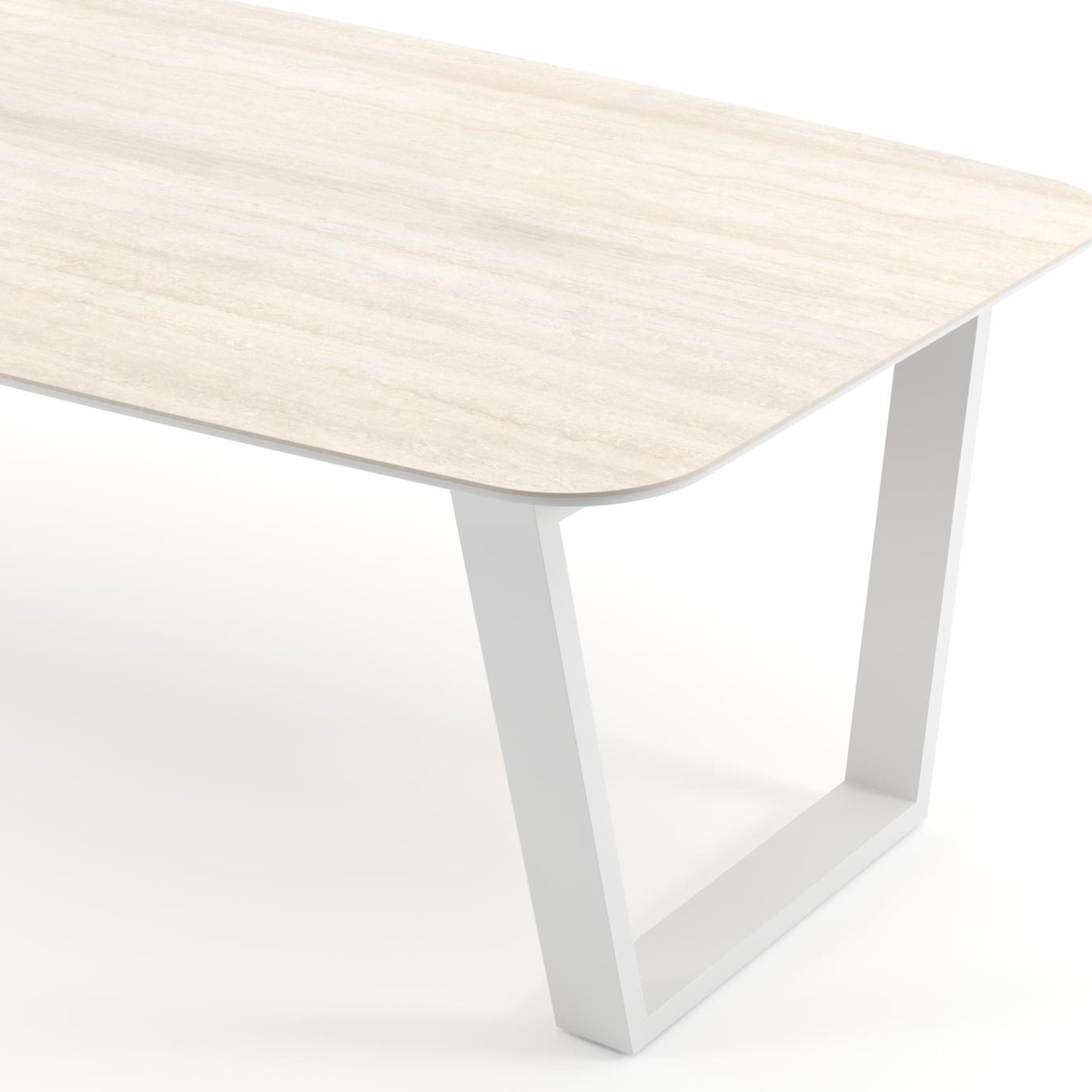 Pagino tuintafel bootvorm in wit aluminium en volkeramiek Travertino Bianco - L 255 x B 115 x H 73 cm | Exterioo tuinmeubelen