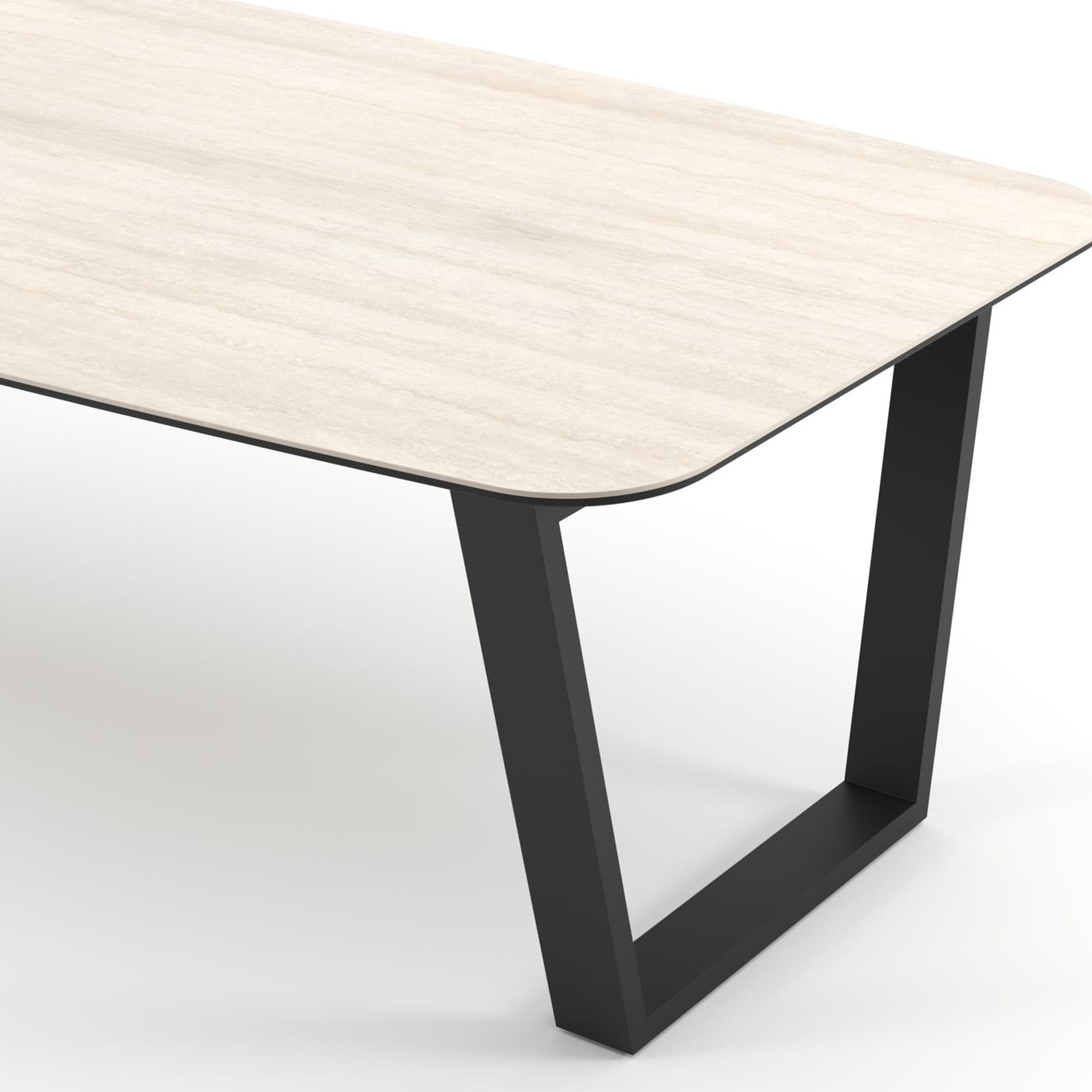 Pagino tuintafel bootvorm in zwart aluminium en volkeramiek Travertino Bianco - L 255 x B 115 x H 73 cm | Exterioo tuinmeubelen