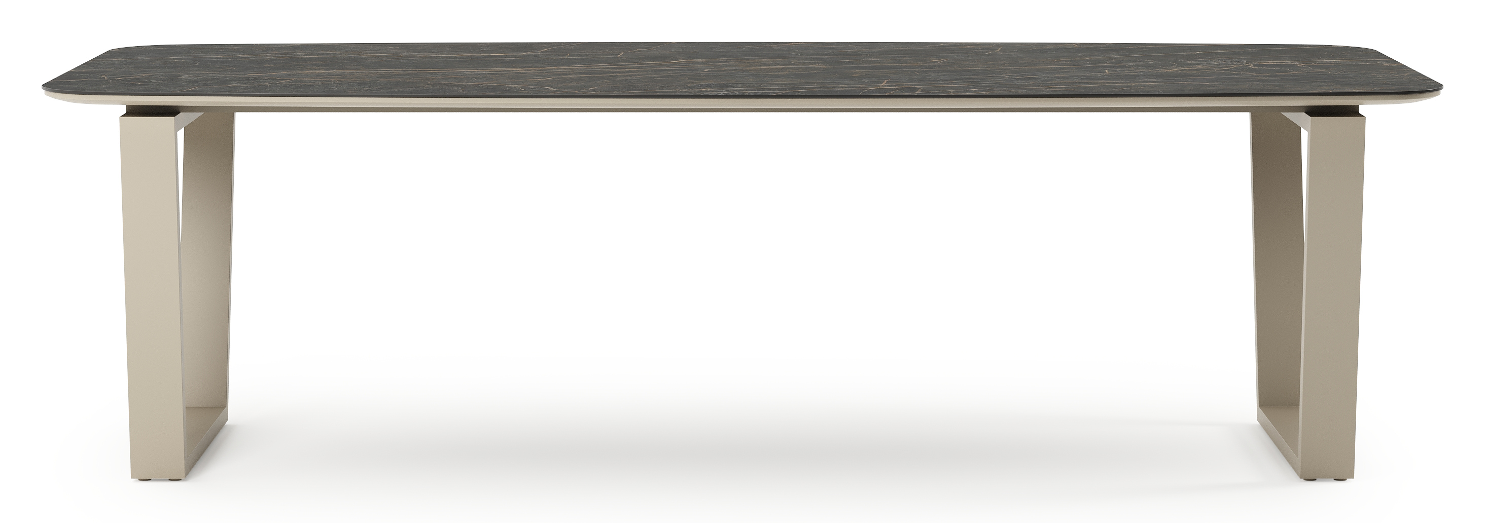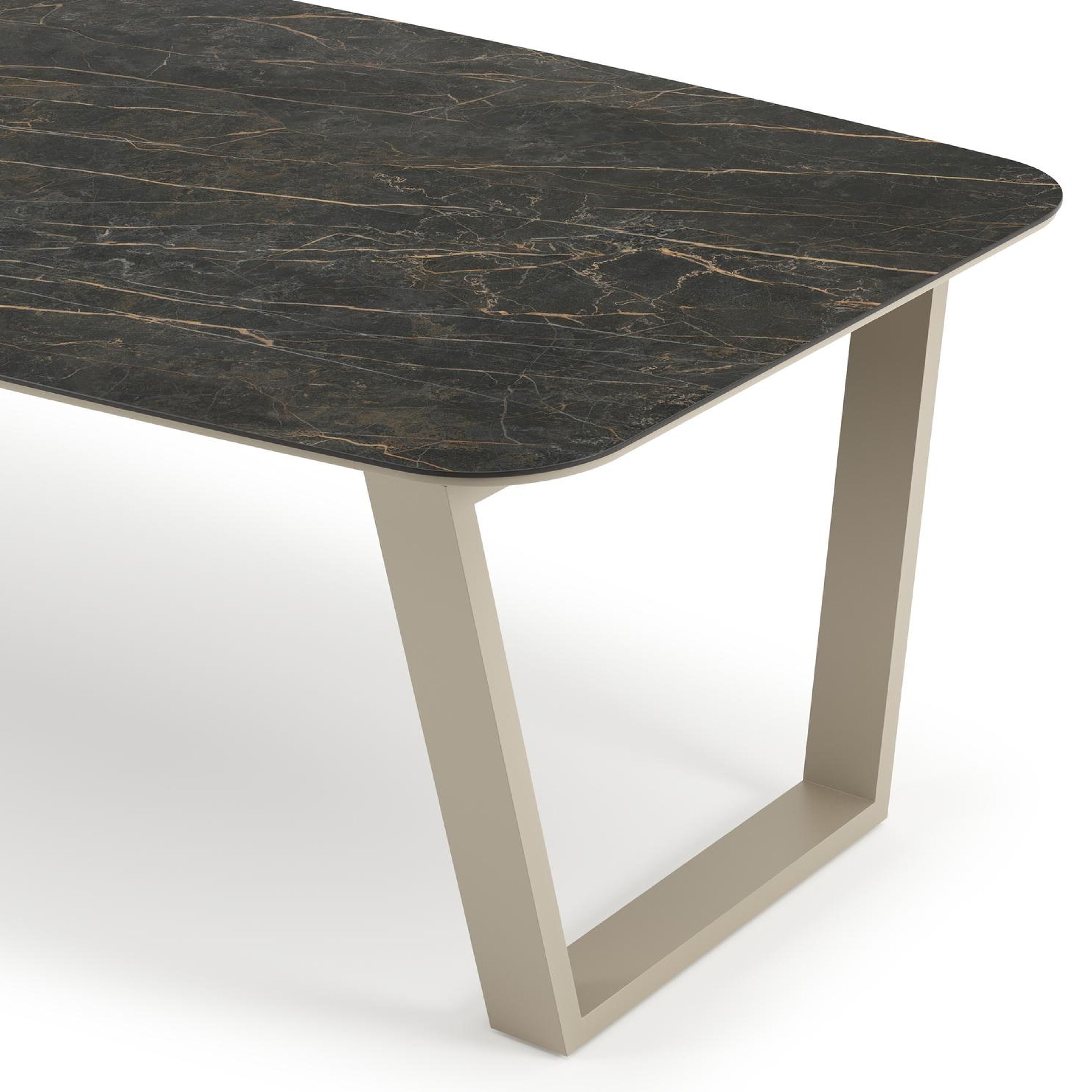 Pagino tuintafel bootvorm in beige aluminium en volkeramiek Black Obsession - L 255 x B 115 x H 73 cm | Exterioo tuinmeubelen