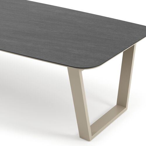 Pagino tuintafel bootvorm in beige aluminium en volkeramiek Basalt Black - L 315 x B 115 x H 73 cm | Exterioo