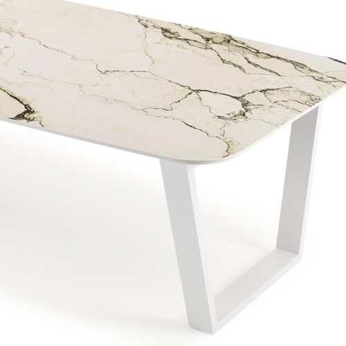 Het tafelblad Colorado Dunes werd geïnspireerd door de grootste duinen van Noord-Amerika. De karakteristieke marmeraders, beige aardetinten en warme textuur maken van dit blad een echt pronkstuk. Het blad verzoent eeuwige robuustheid en uitnodigende zachtheid, en geeft je buitenruimte een sfeervolle look voor een optimale buitenbeleving.