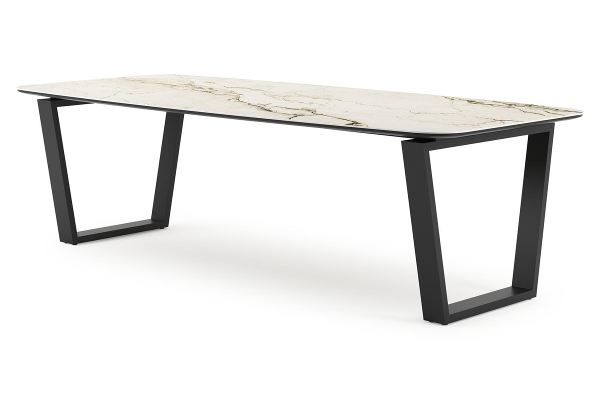 De Pagino tuintafel straalt een verfijnd en authentiek karakter uit, het punt waar jouw buitenmoment en de natuur elkaar raken door het oog voor design. Het weidse en robuuste ontwerpt komt terug in het het karaktervolle frame met doorlopende trapeziumpoot.