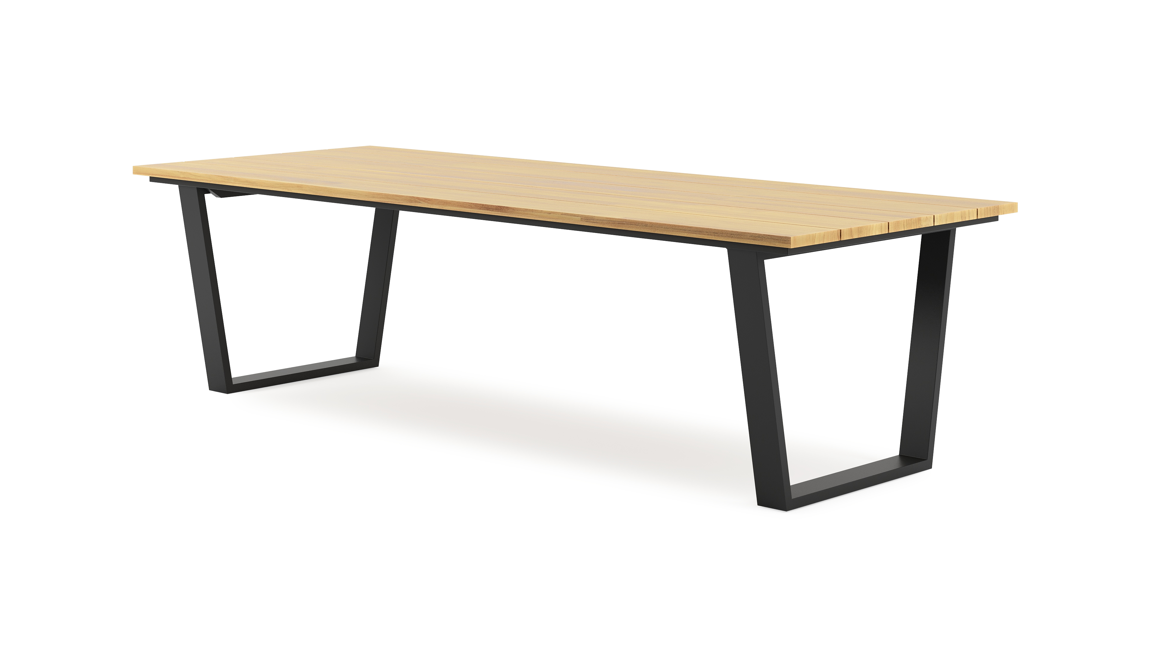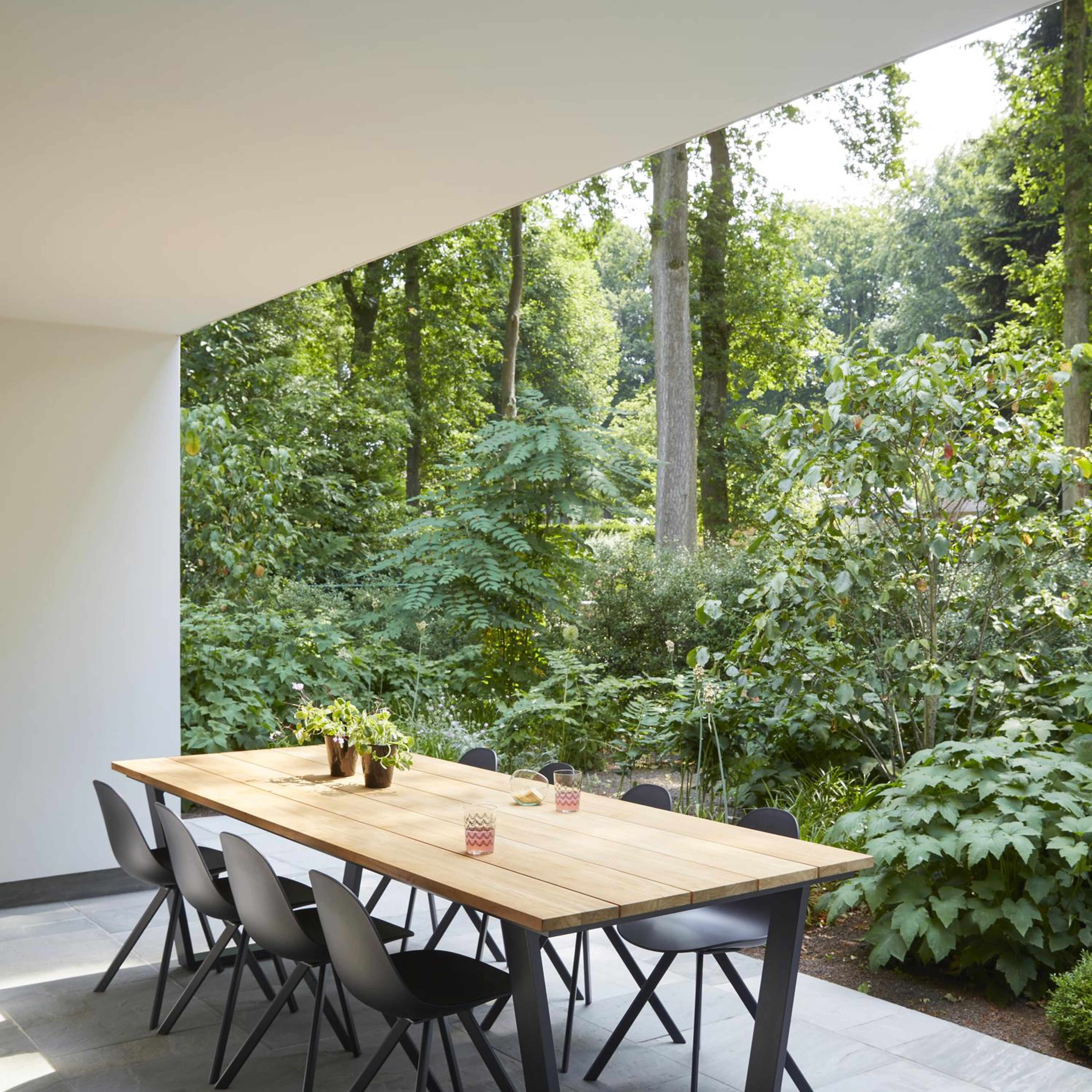 De Pagino tuintafel straalt een verfijnd en authentiek karakter uit, het punt waar jouw buitenmoment en de natuur elkaar raken door het oog voor design. Het weidse en robuuste ontwerpt komt terug in het het karaktervolle frame met doorlopende trapeziumpoot.