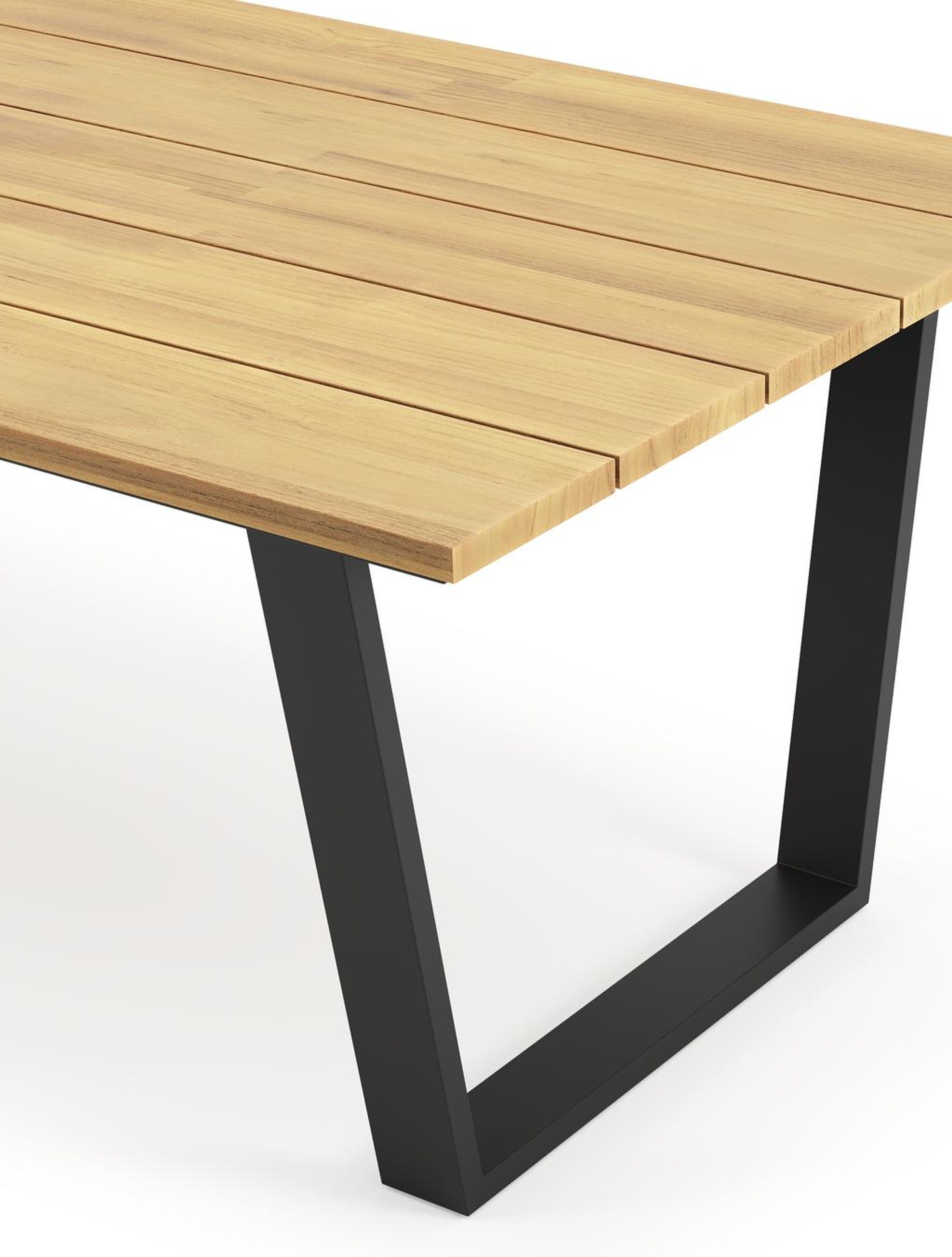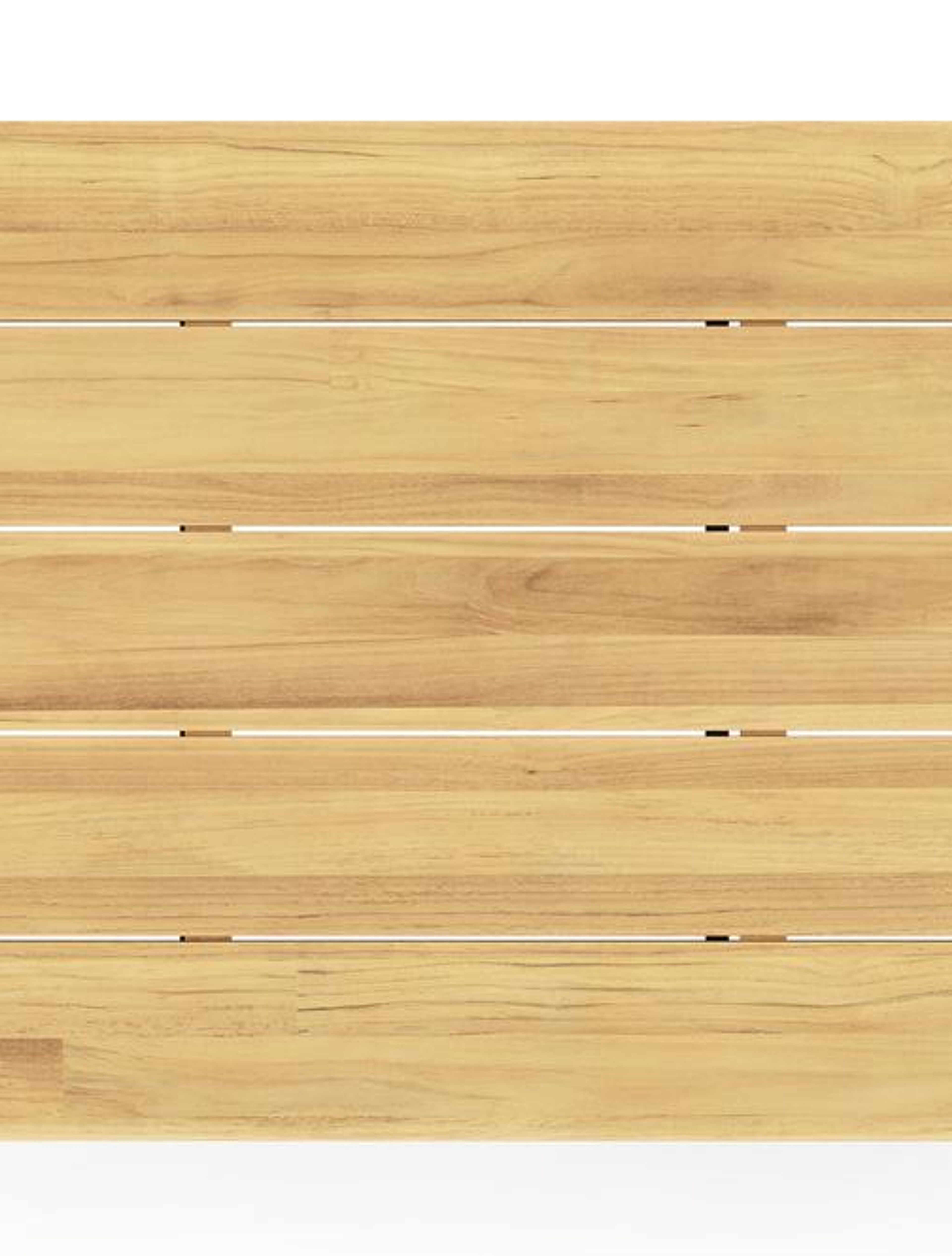 Een tafelblad uit teak staat gelijk aan bijzondere kwaliteit en natuurlijk design. Teak is een kwalitatieve houtsoort gekenmerkt door zijn hardheid. Aangezien hout leeft, kan de structuur of kleur licht anders zijn dan op het beeld weergegeven.