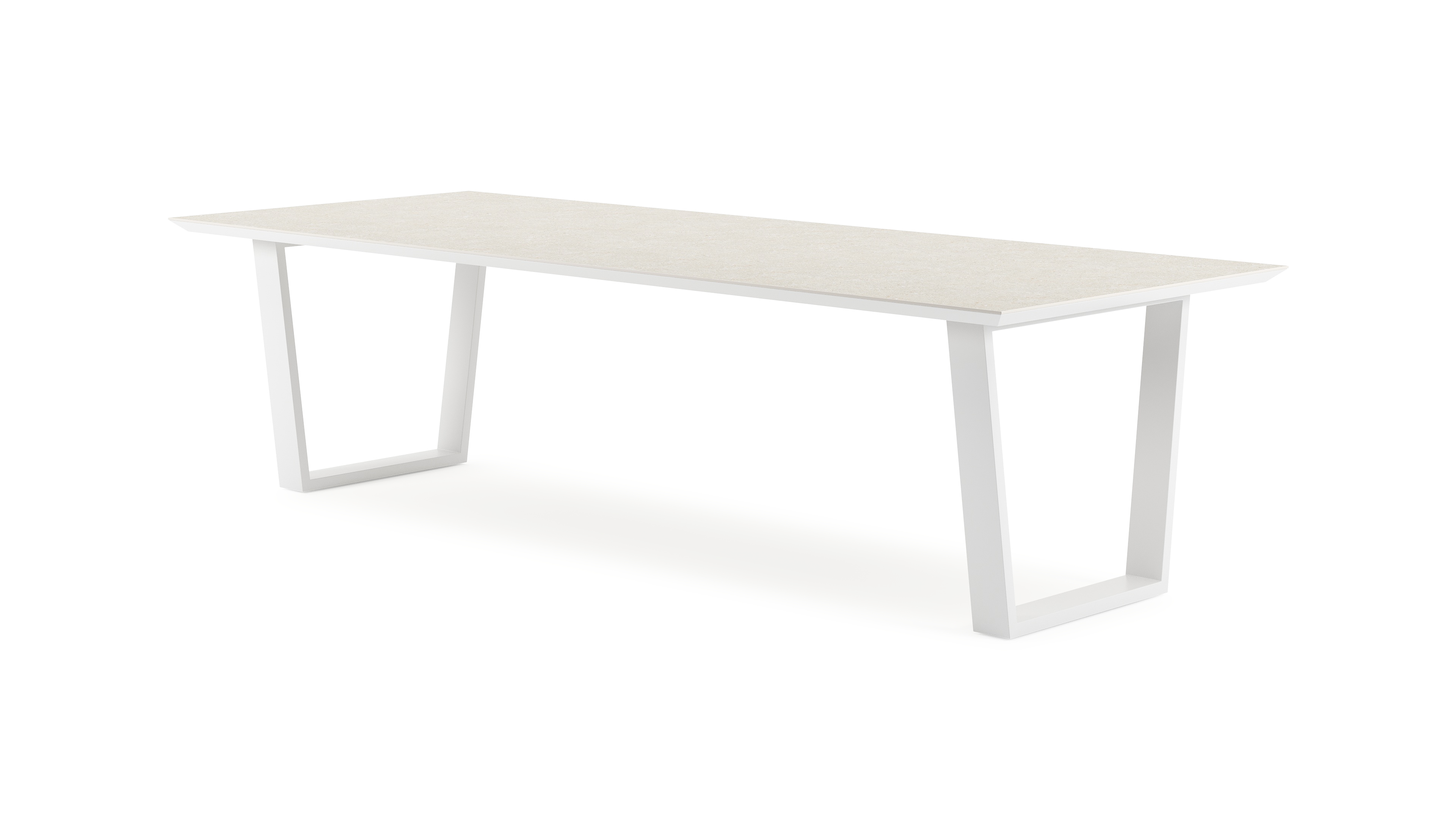 De Pagino tuintafel straalt een verfijnd en authentiek karakter uit, het punt waar jouw buitenmoment en de natuur elkaar raken door het oog voor design. Het weidse en robuuste ontwerpt komt terug in het het karaktervolle frame met doorlopende trapeziumpoot.