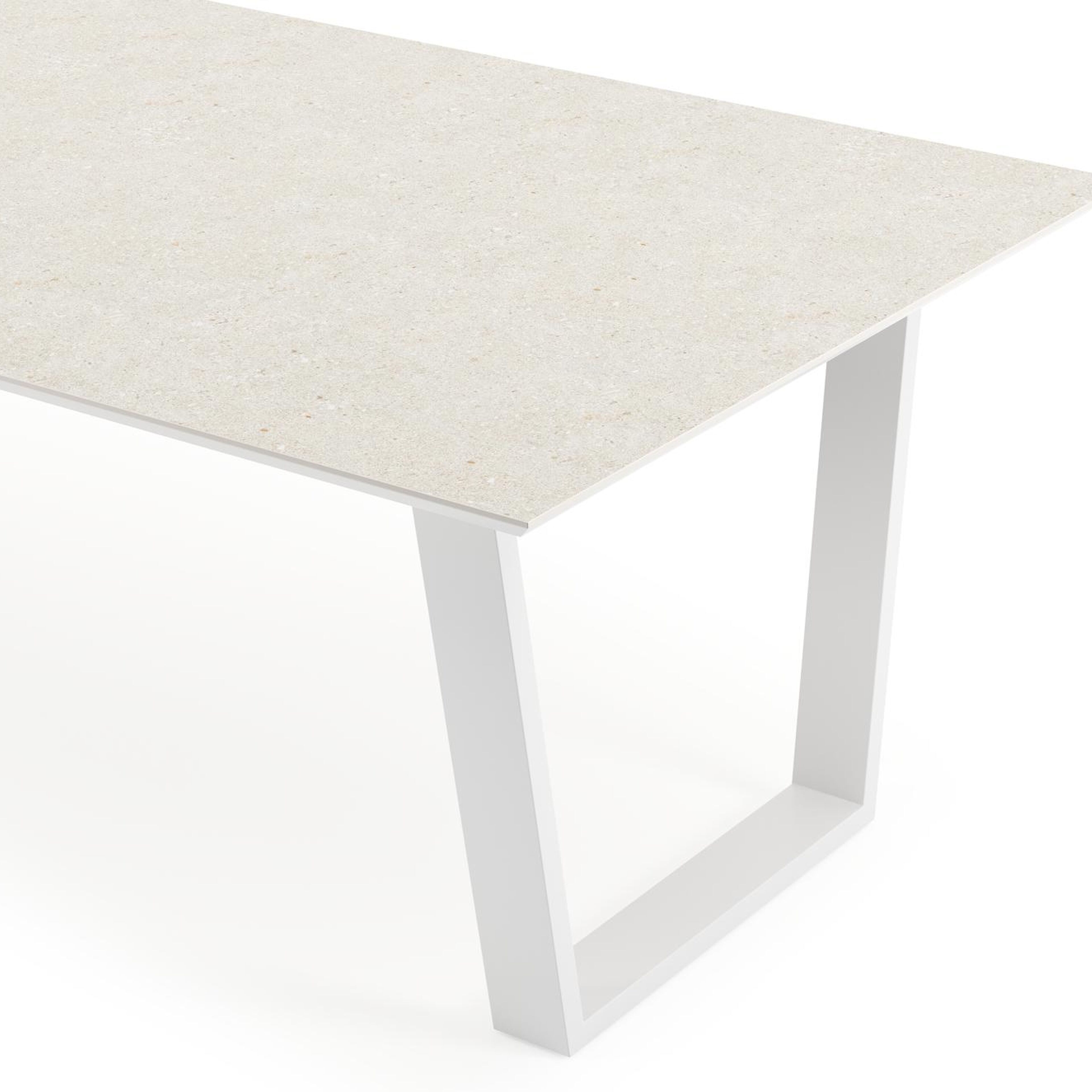 Het frame van de tafel is gemaakt uit roestvrij aluminium, een sterk, maar toch licht materiaal dat makkelijk verplaatsbaar is. Het oppervlak is glad afgewerkt waardoor het geen vuil aantrekt en onderhoudsvriendelijk is. De poedercoating zorgt voor de UV- en weerbestendigheid van je meubel.