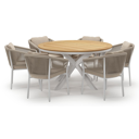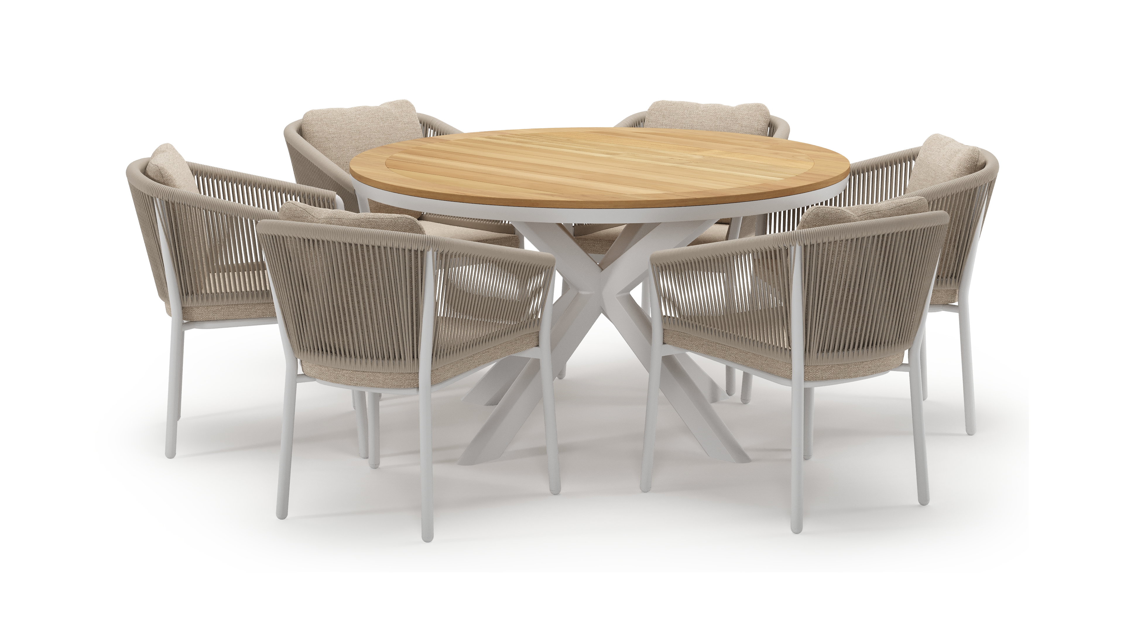 De Pamplona tuinset heeft een stevige, hedendaagse uitstraling. De opvallende kruispoot geeft het ontwerp een karaktervolle en robuuste toets. Het frame van de tuintafel is gemaakt uit roestvrij aluminium, een sterk, maar toch licht materiaal dat makkelijk verplaatsbaar is. Het oppervlak is glad afgewerkt waardoor het geen vuil aantrekt en onderhoudsvriendelijk is. De poedercoating zorgt voor de UV- en weerbestendigheid van je meubel. Een sintered stone tafelblad bevat verschillende soorten mineralen die op een nog hogere druk worden gebakken dan keramiek, maar toch dezelfde eigenschappen heeft. Het materiaal is uiterst stevig. Het is vorst-, hitte- en krasbestendig en eenvoudig schoon te maken.