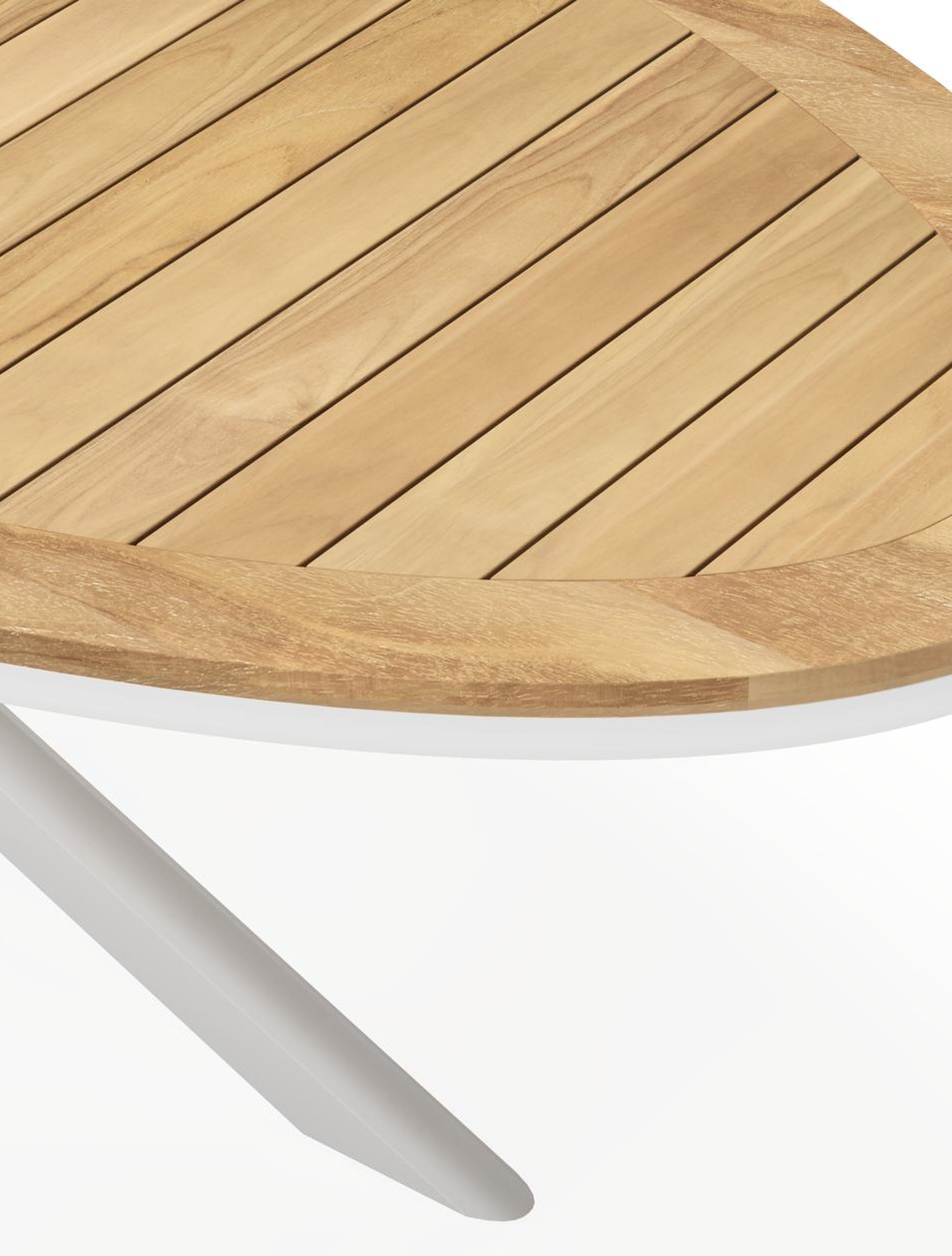 Een tafelblad uit teak staat gelijk aan bijzondere kwaliteit en natuurlijk design. Teak is een kwalitatieve houtsoort gekenmerkt door zijn hardheid. Aangezien hout leeft, kan de structuur of kleur licht anders zijn dan op het beeld weergegeven.