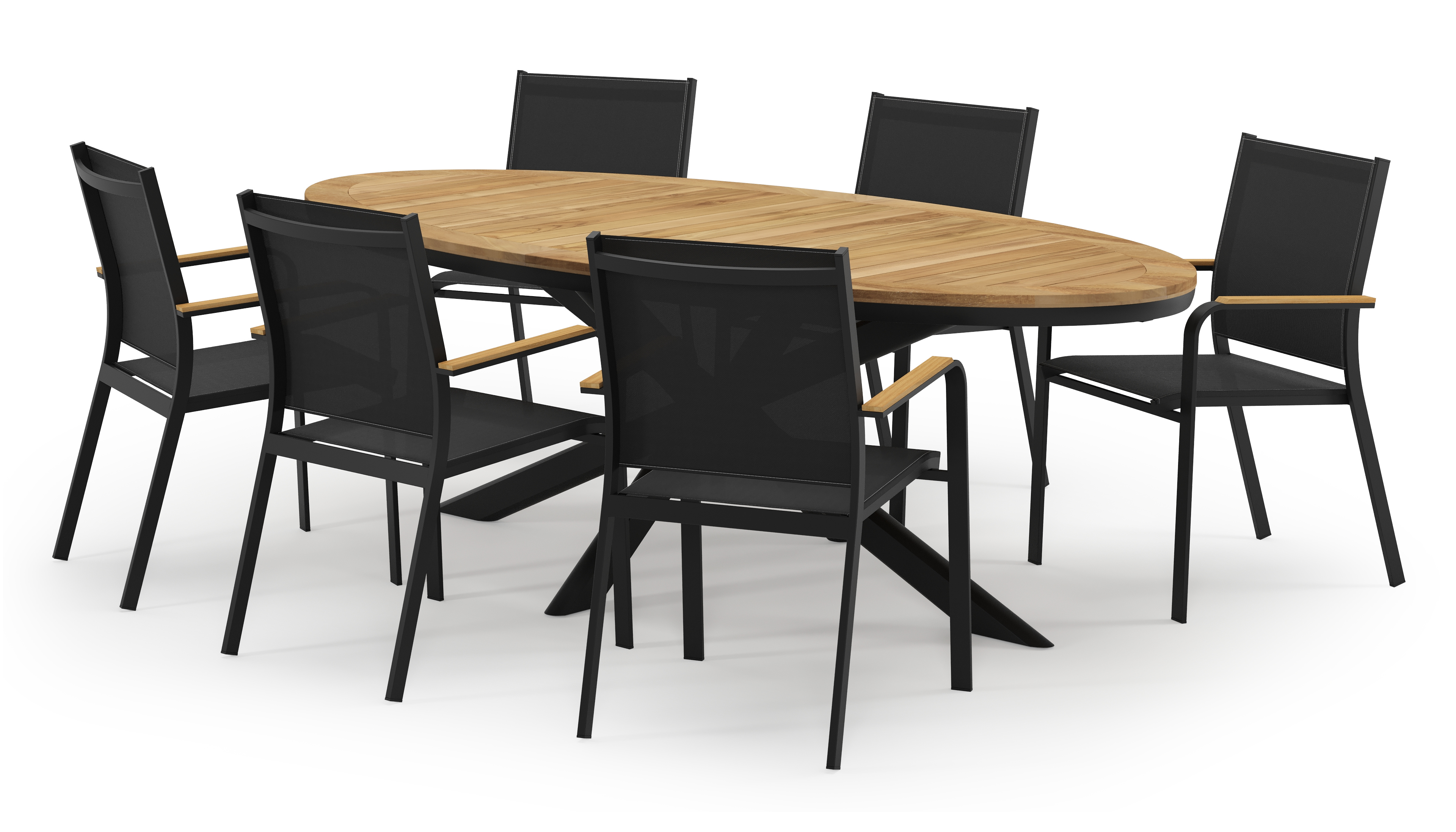 De Pamplona tuinset straalt met zijn afgeronde vorm en opvallende kruispoot een robuuste hedendaagse look uit. Deze tuinset is ideaal voor een groot gezelschap.