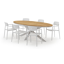 De Pamplona tuinset straalt met zijn afgeronde vorm en opvallende kruispoot een robuuste hedendaagse look uit. Deze tuinset is ideaal voor een groot gezelschap.