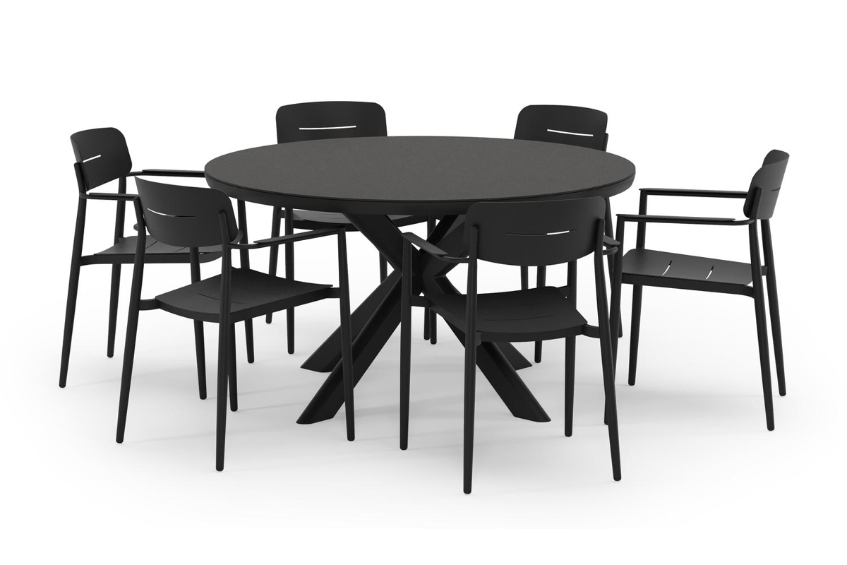 De Pamplona tuinset straalt met zijn afgeronde vorm en opvallende kruispoot een robuuste hedendaagse look uit. Deze tuinset is ideaal voor een groot gezelschap.