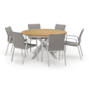 De Pamplona tuinset straalt met zijn afgeronde vorm en opvallende kruispoot een robuuste hedendaagse look uit. Deze tuinset is ideaal voor een groot gezelschap.