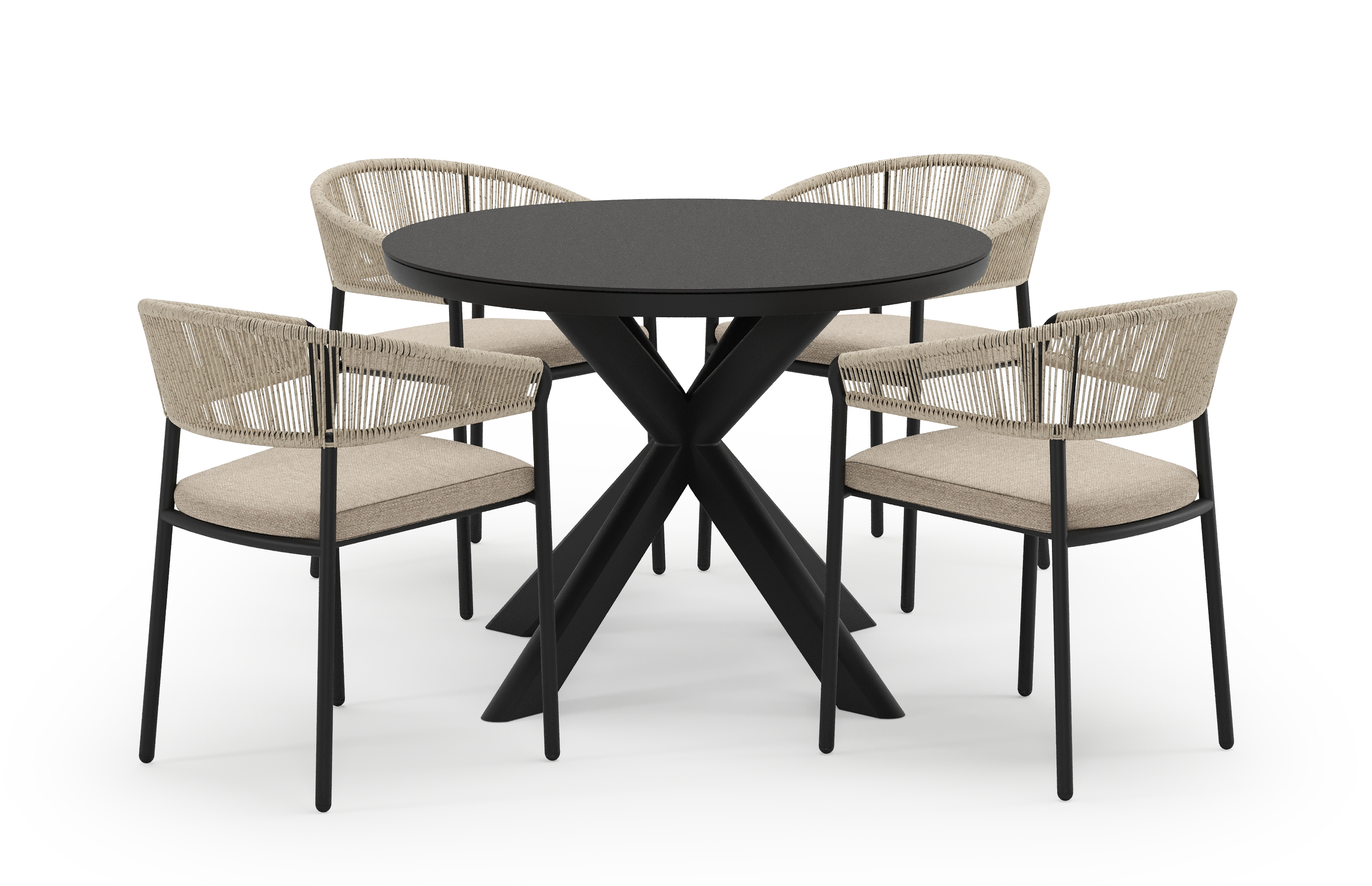 De Pamplona tuinset straalt met zijn afgeronde vorm en opvallende kruispoot een robuuste hedendaagse look uit. Deze tuinset is ideaal voor een groot gezelschap.