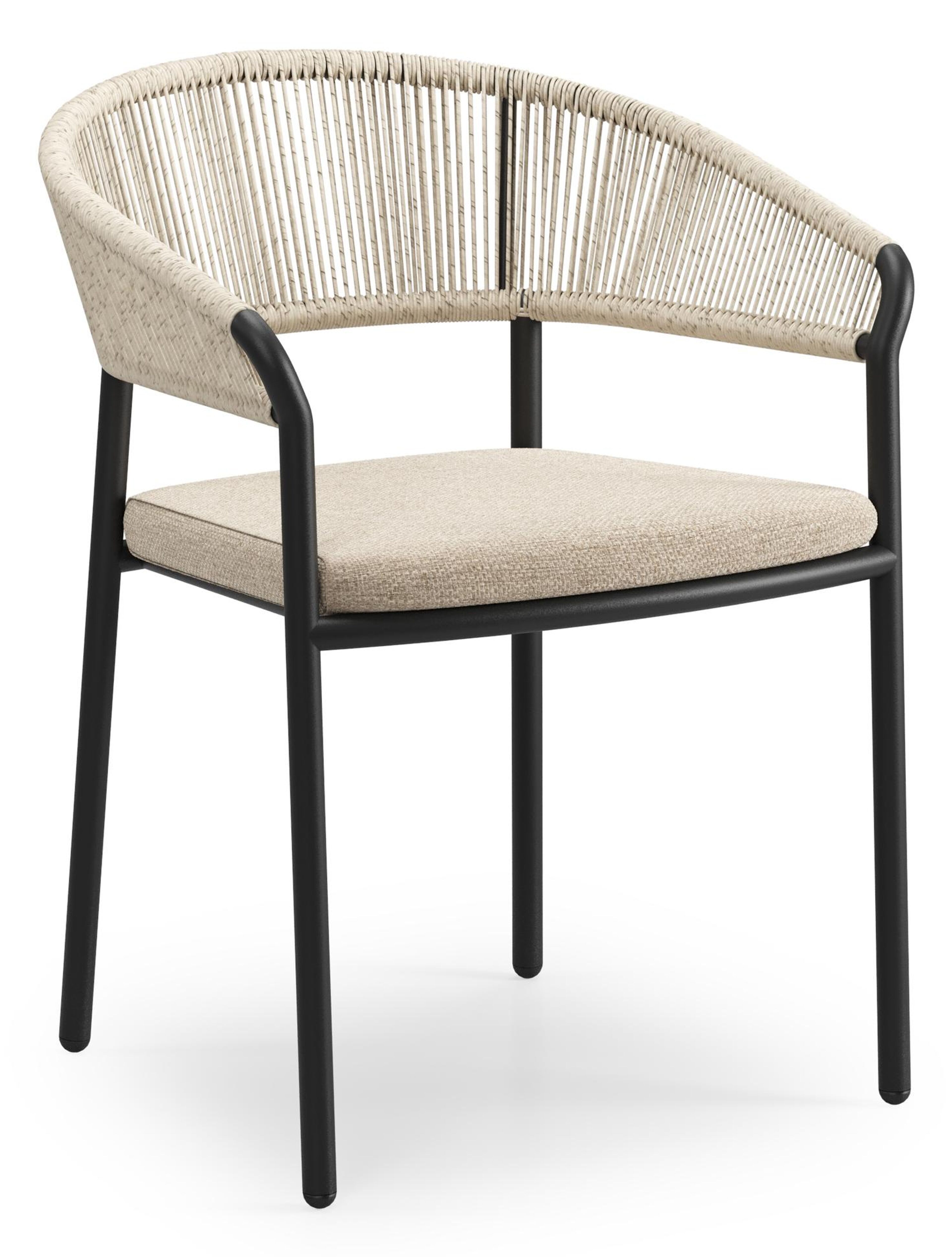 De Zamora tuinstoel combineert een stijlvolle uitstraling met een aangenaam zitcomfort. Het frame is gemaakt uit roestvrij aluminium. De rugleuning en armleuning zijn volledig afgewerkt met rope voor een hedendaagse elegante touch. De stoel is stapelbaar en dus makkelijk op te bergen. De stoelkussens zijn inbegrepen en gemaakt uit Weather+ Softtouch. De duurzame kussens voelen zacht aan en zijn vuilafstotend. Weather+ Softtouch kussens zijn beperkt waterafstotend. In de winter of bij langdurige regen bewaar je de kussens best binnen.