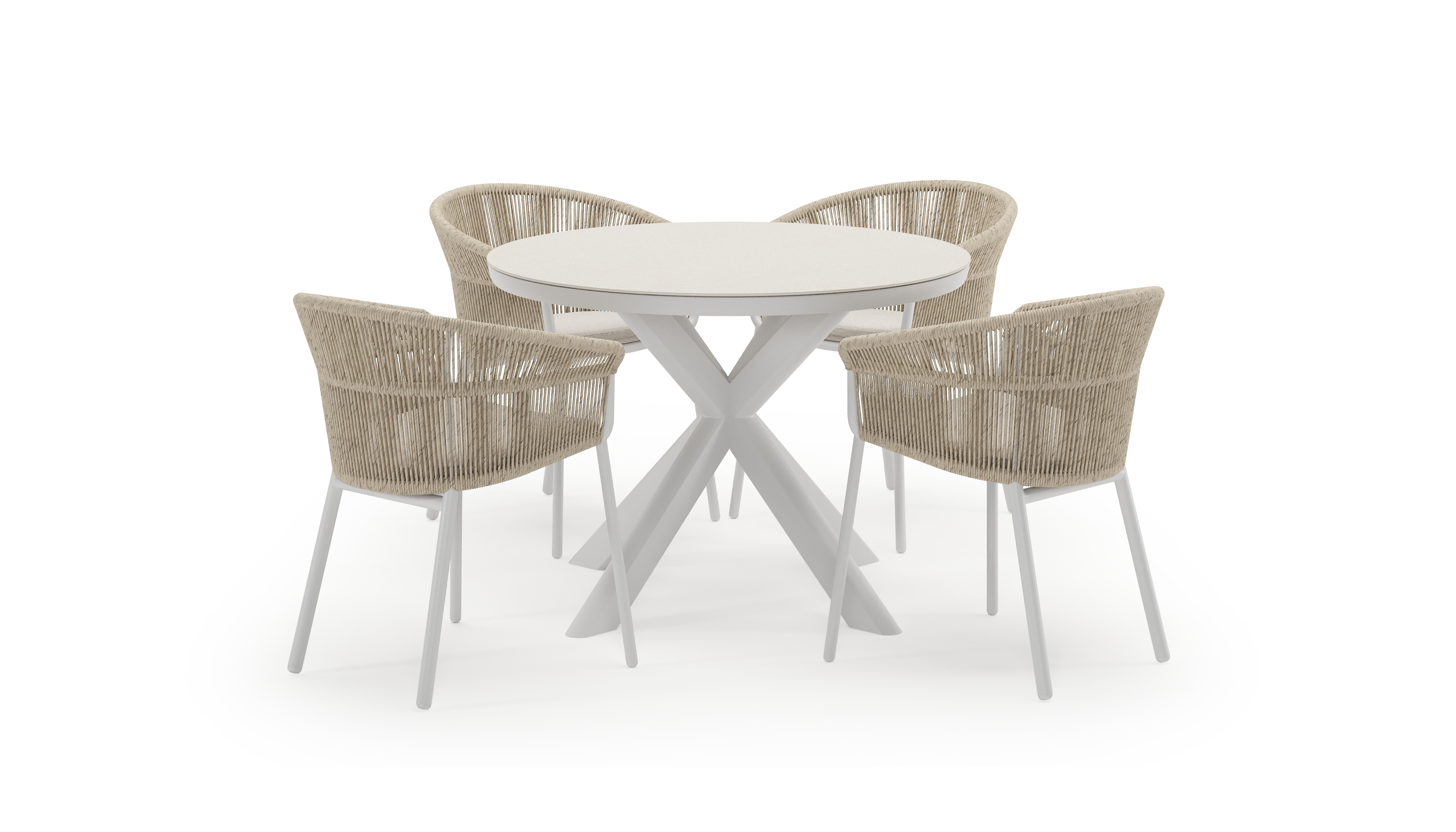 De Pamplona tuinset straalt met zijn afgeronde vorm en opvallende kruispoot een robuuste hedendaagse look uit. Deze tuinset is ideaal voor een groot gezelschap.
