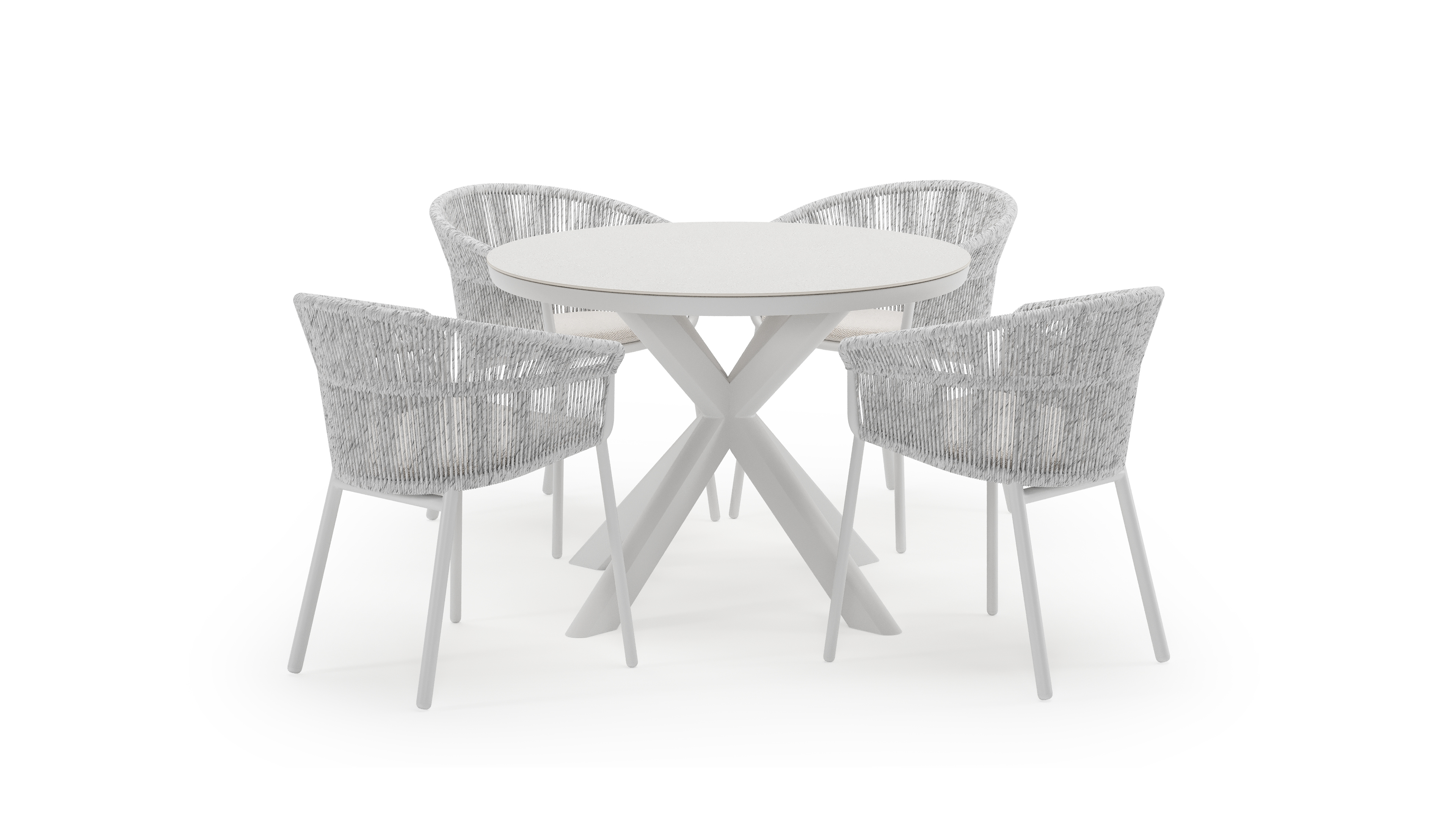 De Pamplona tuinset straalt met zijn afgeronde vorm en opvallende kruispoot een robuuste hedendaagse look uit. Deze tuinset is ideaal voor een groot gezelschap.