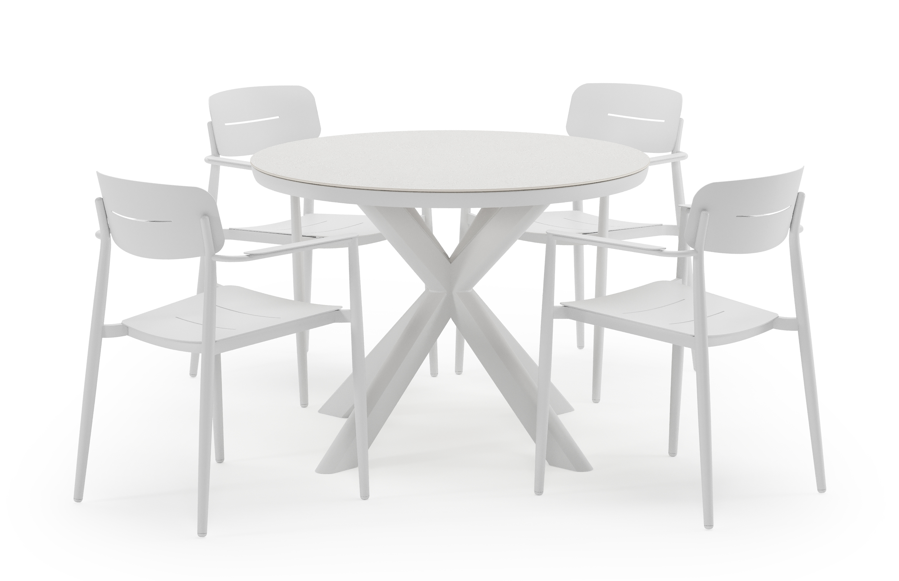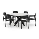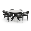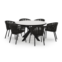 De Pamplona tuinset straalt met zijn afgeronde vorm en opvallende kruispoot een robuuste hedendaagse look uit. Deze tuinset is ideaal voor een groot gezelschap.