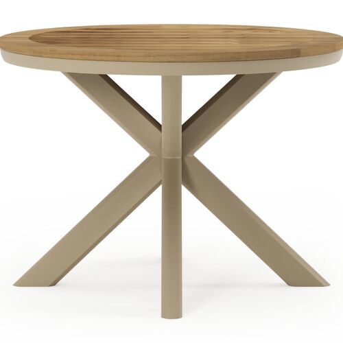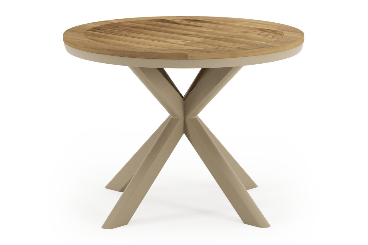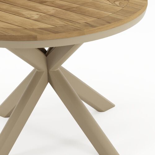 Pamplona tuintafel in beige aluminium en teak - Dia. 105 x H 72 cm | Exterioo