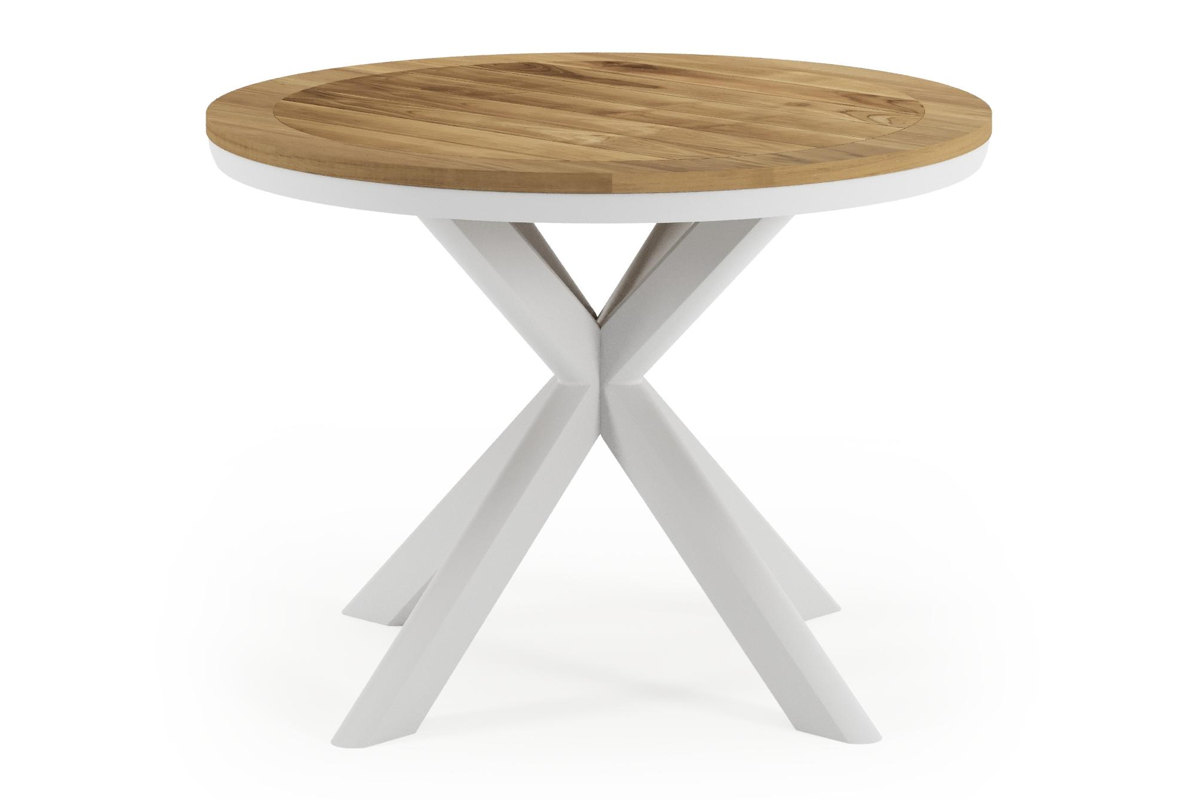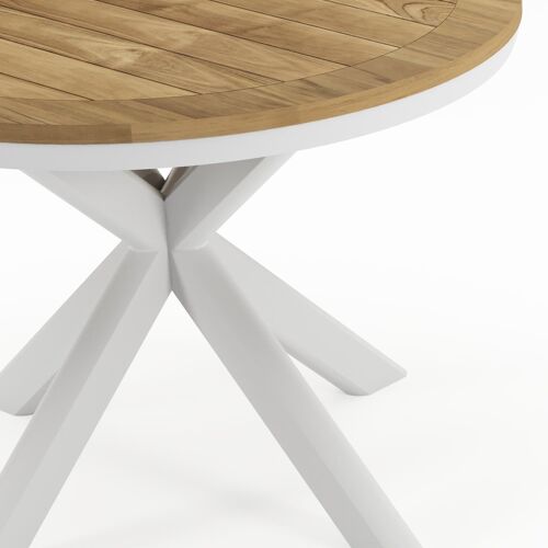 Pamplona tuintafel in wit aluminium en teak - Dia. 105 x H 72 cm | Exterioo