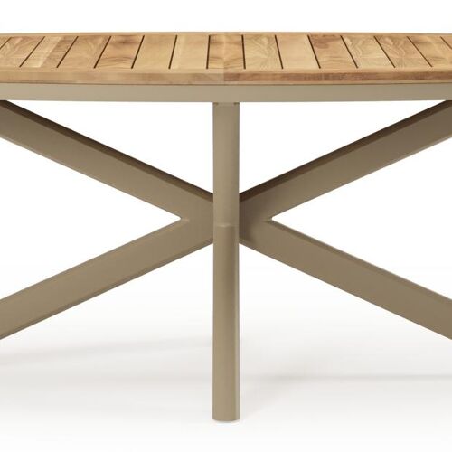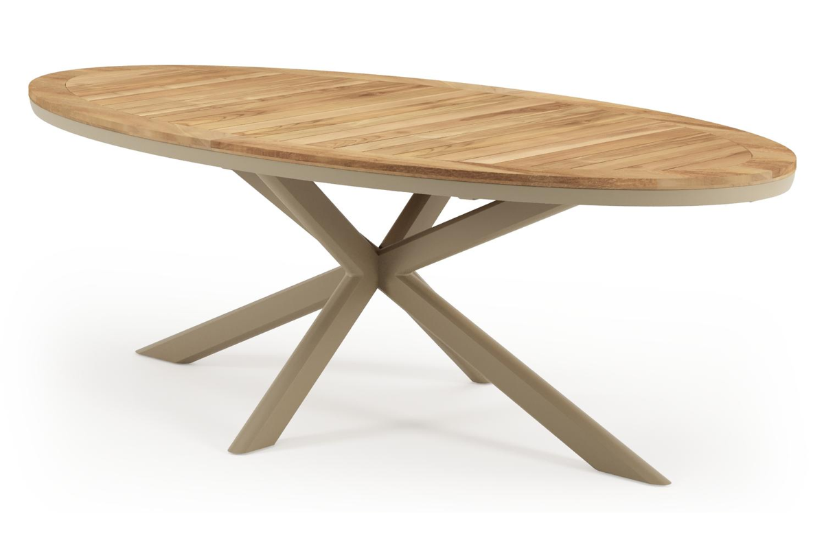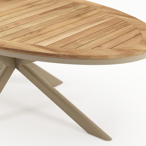 Pamplona tuintafel ovaal in beige aluminium en teak - L 239 x B 115 x H 73 cm | Exterioo