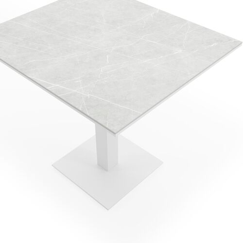 De Piemonte tafel heeft een minimalistisch, strak ontwerp en is herkenbaar aan zijn stevige centrale poot. Deze tafel is ideaal voor op balkon of klein terras. Deze tafel is afgewerkt met een Shilin tafelblad. De aardse kleurschakeringen passen perfect aan bij onze nieuwe outdoortrends. In het tafelblad is er een licht reliëf te voelen, waardoor het Shilin blad de look & feel heeft van echte natuursteen. In het blad is een fijne glinster aanwezig. Het voordeel van volkeramische tafelbladen is dat ze krasbestendig zijn en bestand zijn tegen alle weersomstandigheden.