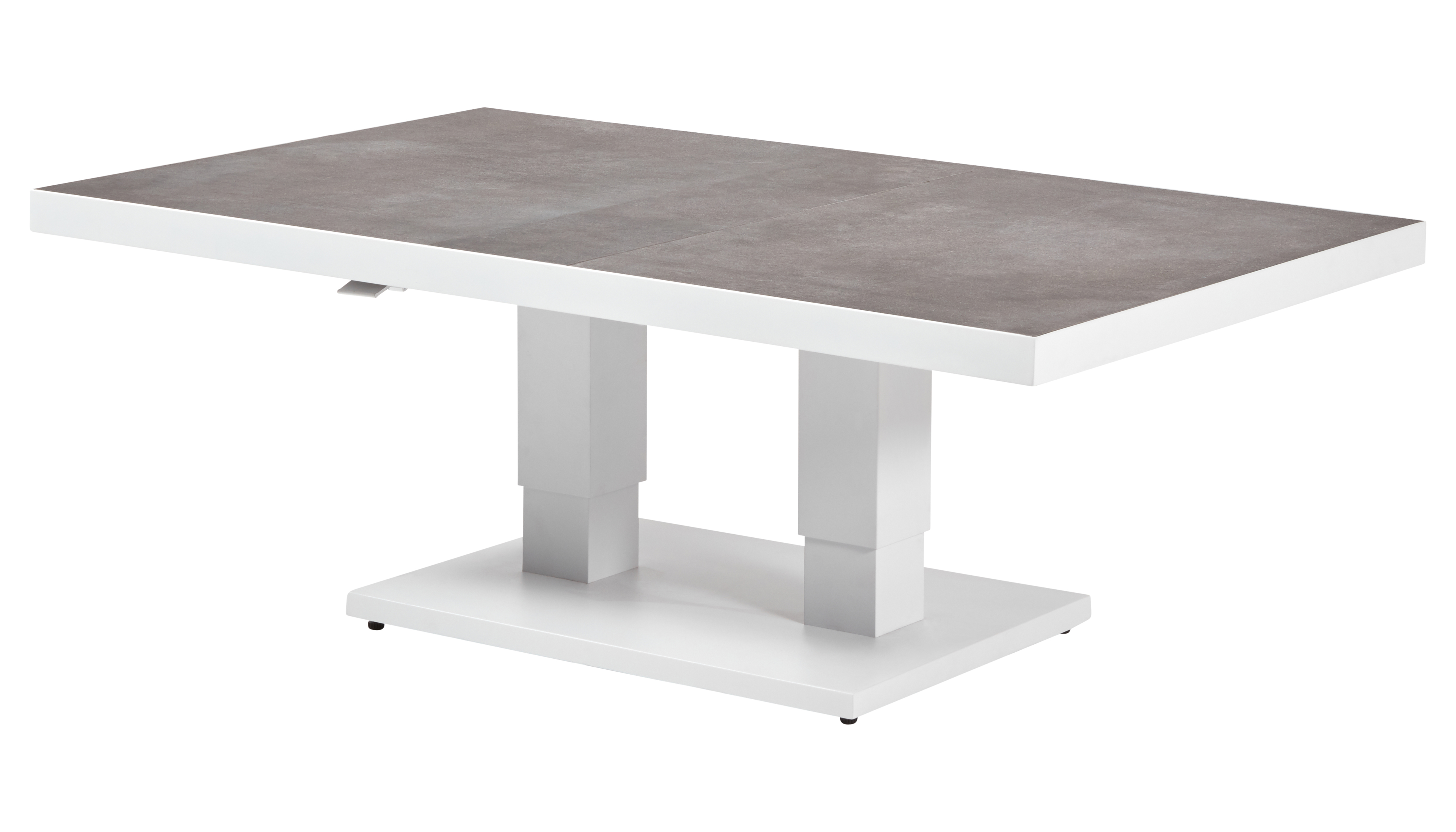 De Pop-up loungetafel is een mooie uitbreiding van jouw loungeset. Vervolledig jouw terras met deze mooi afgewerkt loungetafel. Genoeg plaats om jouw spullen op te plaatsen! Het frame van de loungetafel is gemaakt uit roestvrij aluminium, een sterk, maar toch licht materiaal dat makkelijk verplaatsbaar is. Het oppervlak is glad afgewerkt waardoor het geen vuil aantrekt en onderhoudsvriendelijk is. De poedercoating zorgt voor de UV- en weersbestendigheid van je meubel. Een volkeramisch tafelblad is een keramische plaat die op extreem hoge temperatuur gebakken wordt. Het materiaal is uiterst stevig en kan tegen een stootje. Een volkeramisch tafelblad is vorst-, hitte- en krasbestendig en eenvoudig schoon te maken.