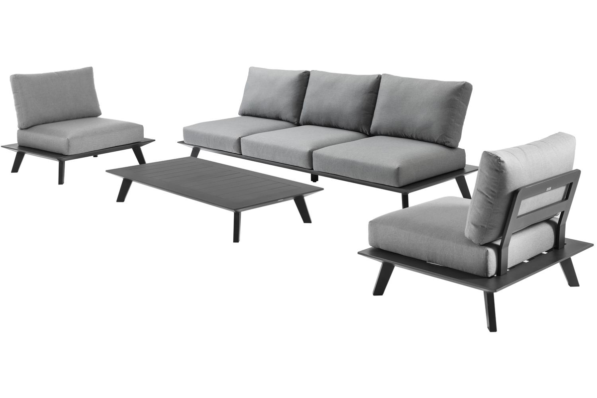 De loungetafel is inbegrepen en volledig gemaakt uit roestvrij aluminium.