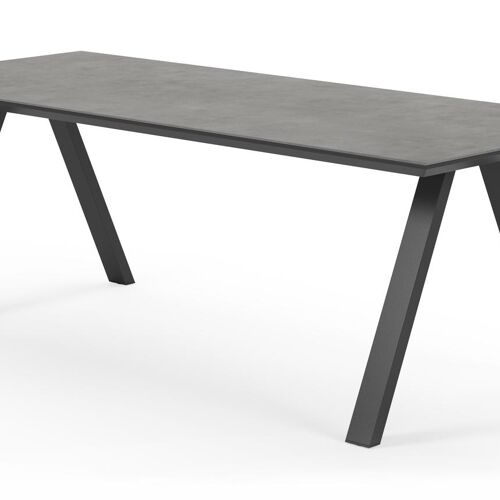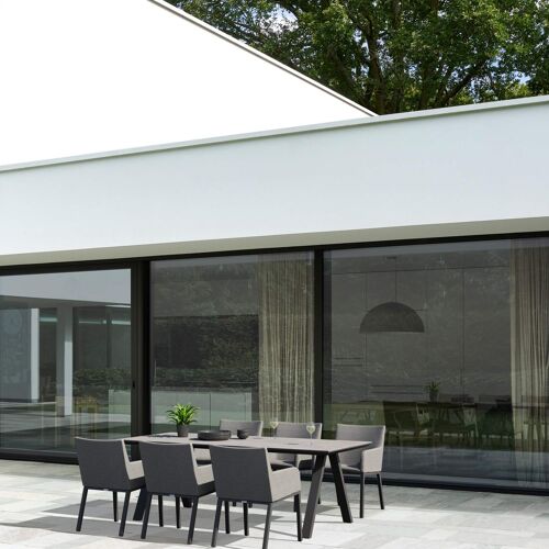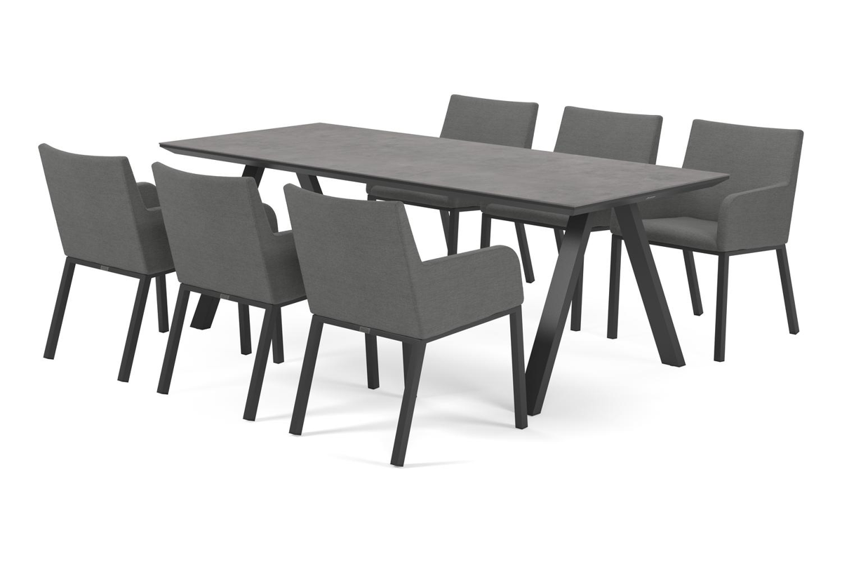 Puglia tuinset in zwart aluminium en grijs volkeramiek tafelblad met 6 Rivo tuinstoelen | Exterioo